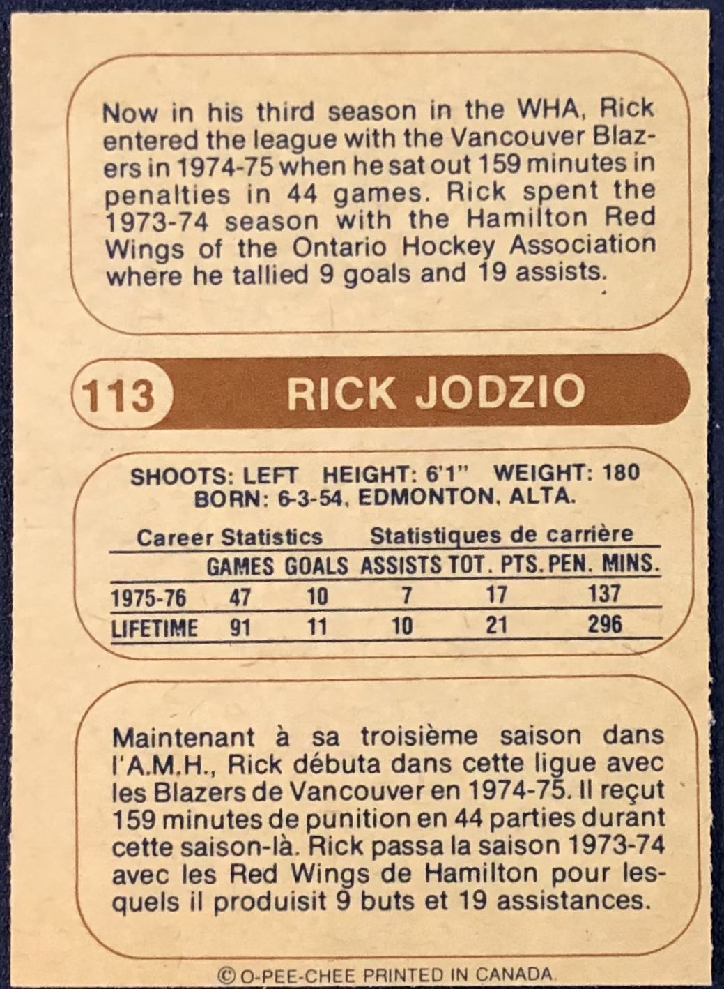 Lot 907 1976-77 O-PEE-CHEE WHA RICK JODZIO