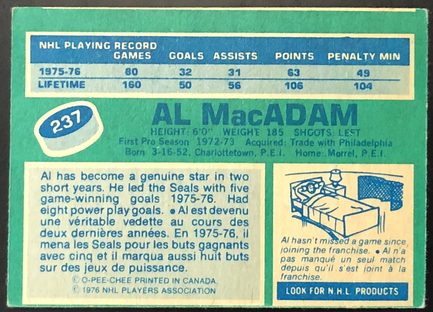 Lot 913 1976-77 O-PEE-CHEE AL MacADAM