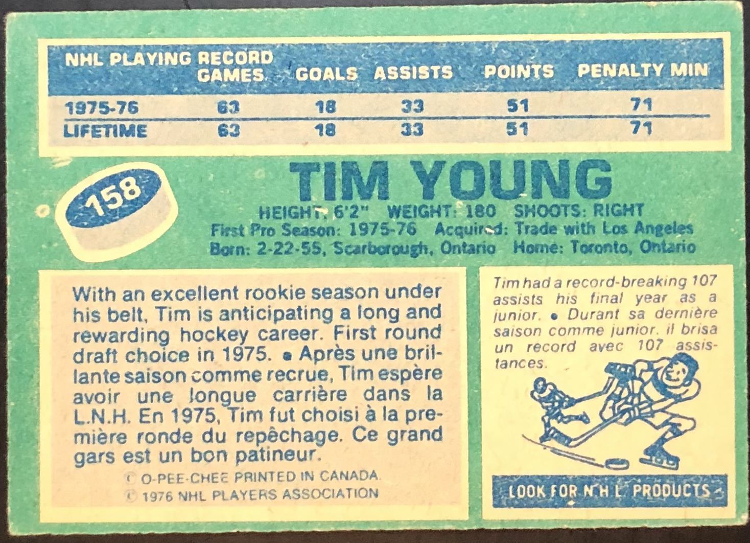 Lot 914 1976-77 NHL O-PEE-CHEE TIM YOUNG ROOKIE CARD