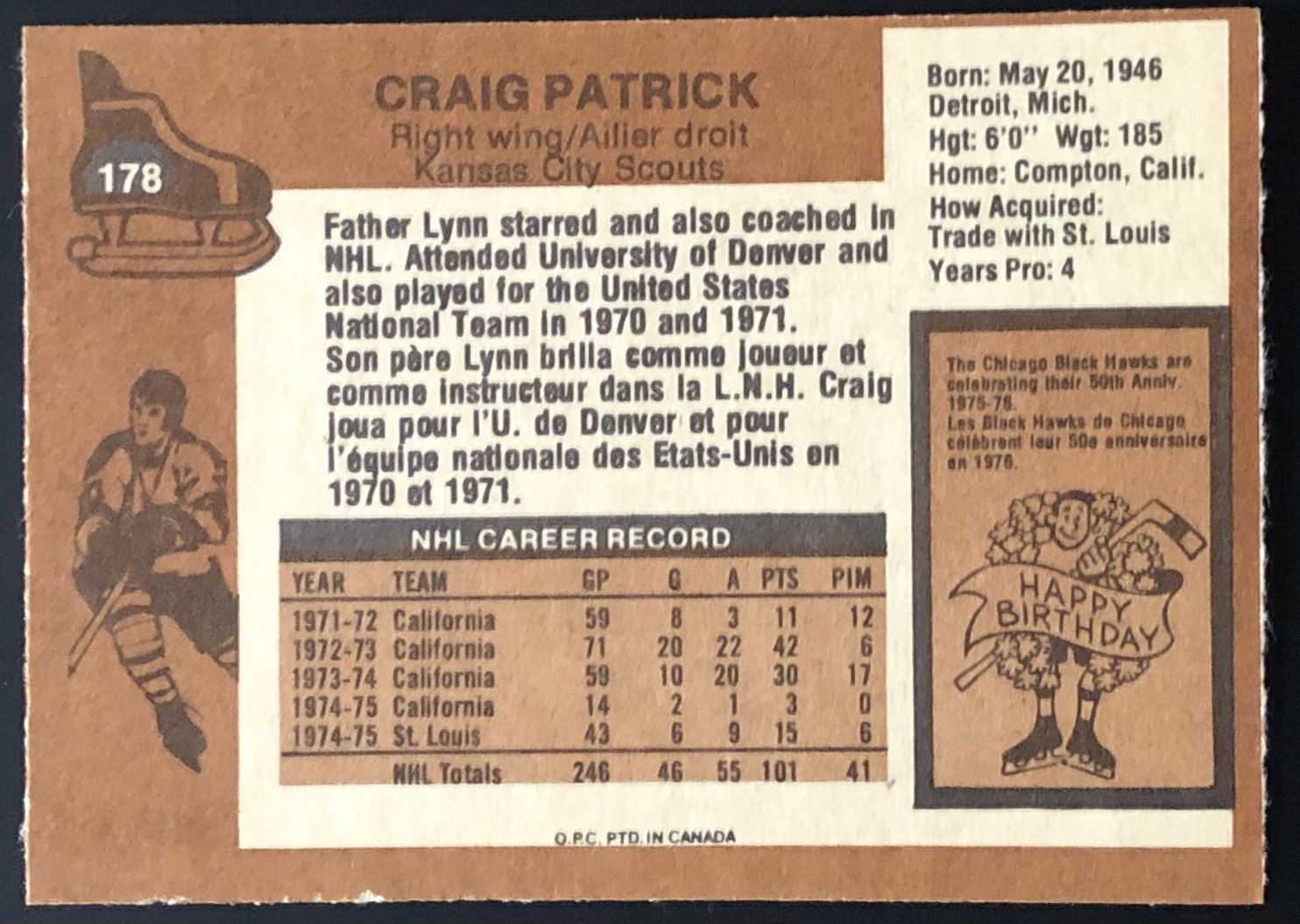 Lot 916 1975-76 O-PEE-CHEE CRAIG PATRICK (HOF)