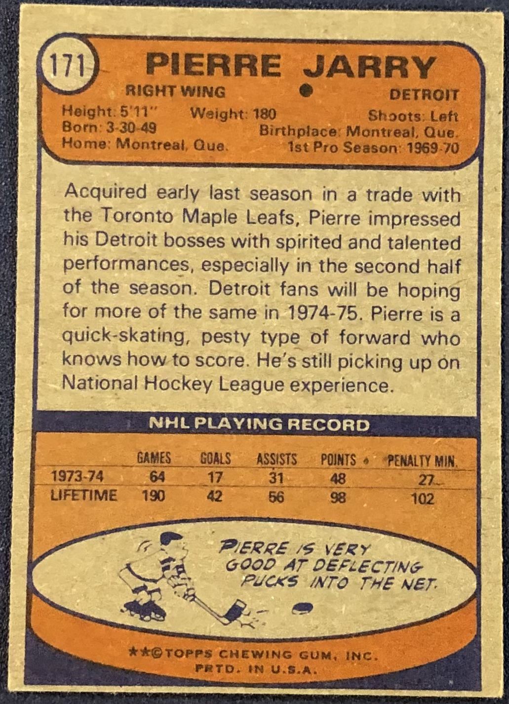 Lot 931 1974-75 TOPPS PIERRE JARRY