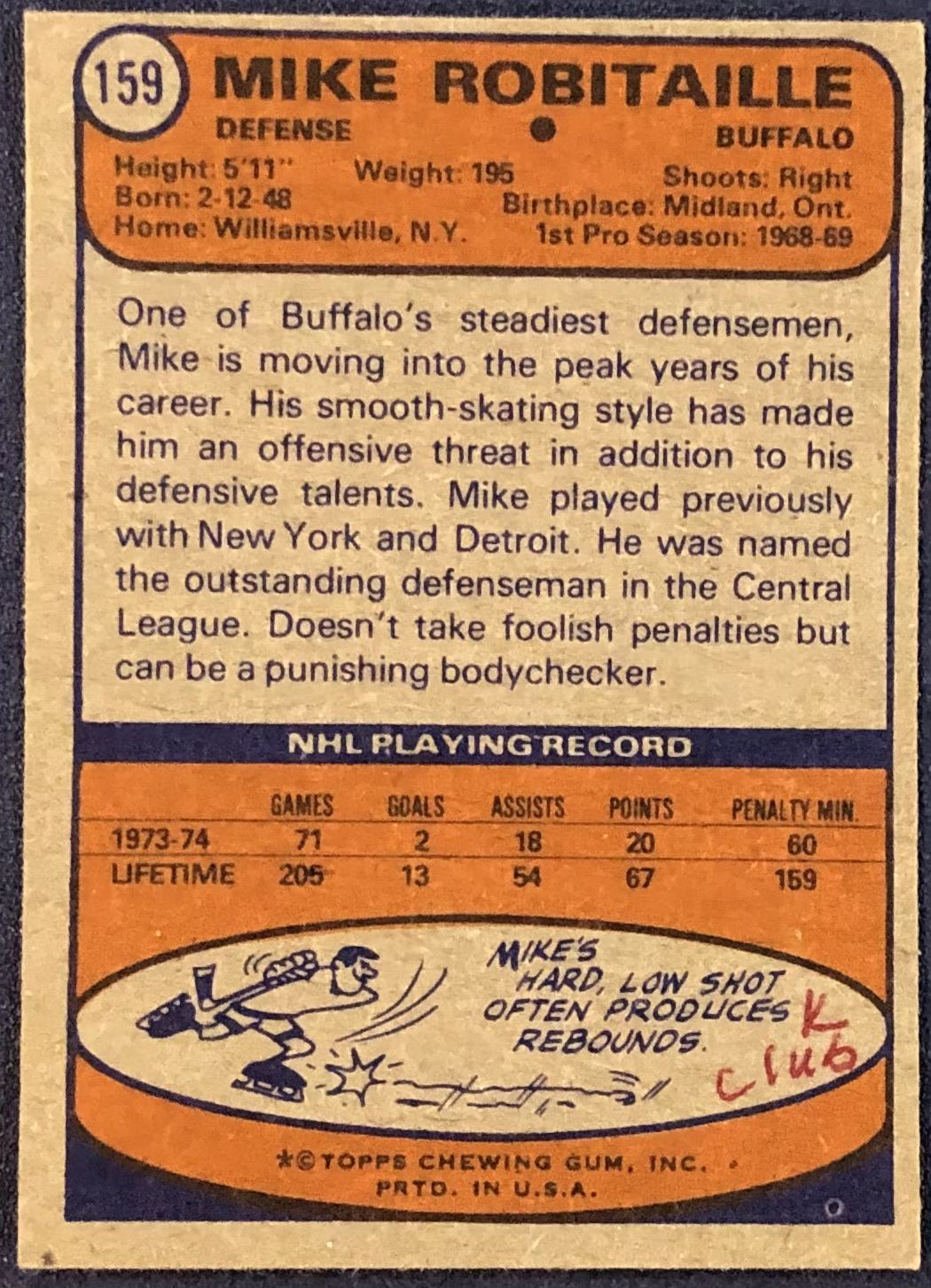 Lot 933 1974-75 TOPPS MIKE ROBITAILLE