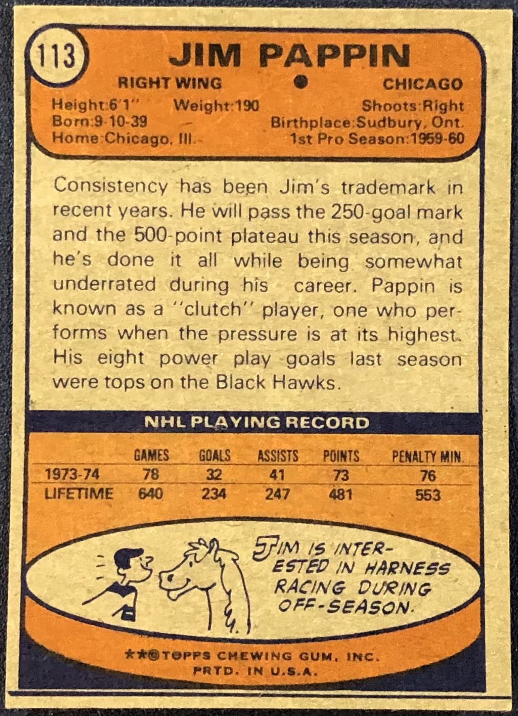 Lot 938 1974-75 TOPPS JIM PAPPIN