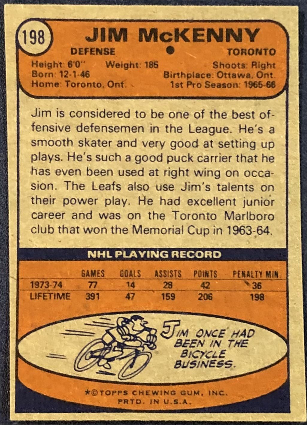 Lot 939 1974-75 TOPPS JIM McKENNY