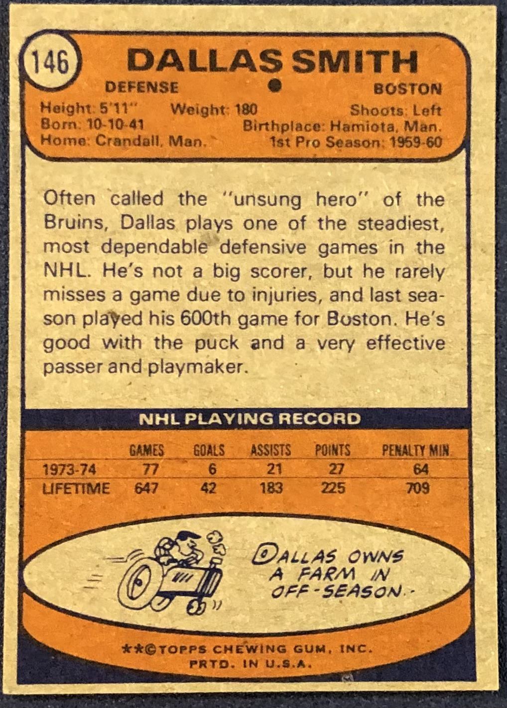 Lot 947 1974-75 TOPPS DALLAS SMITH