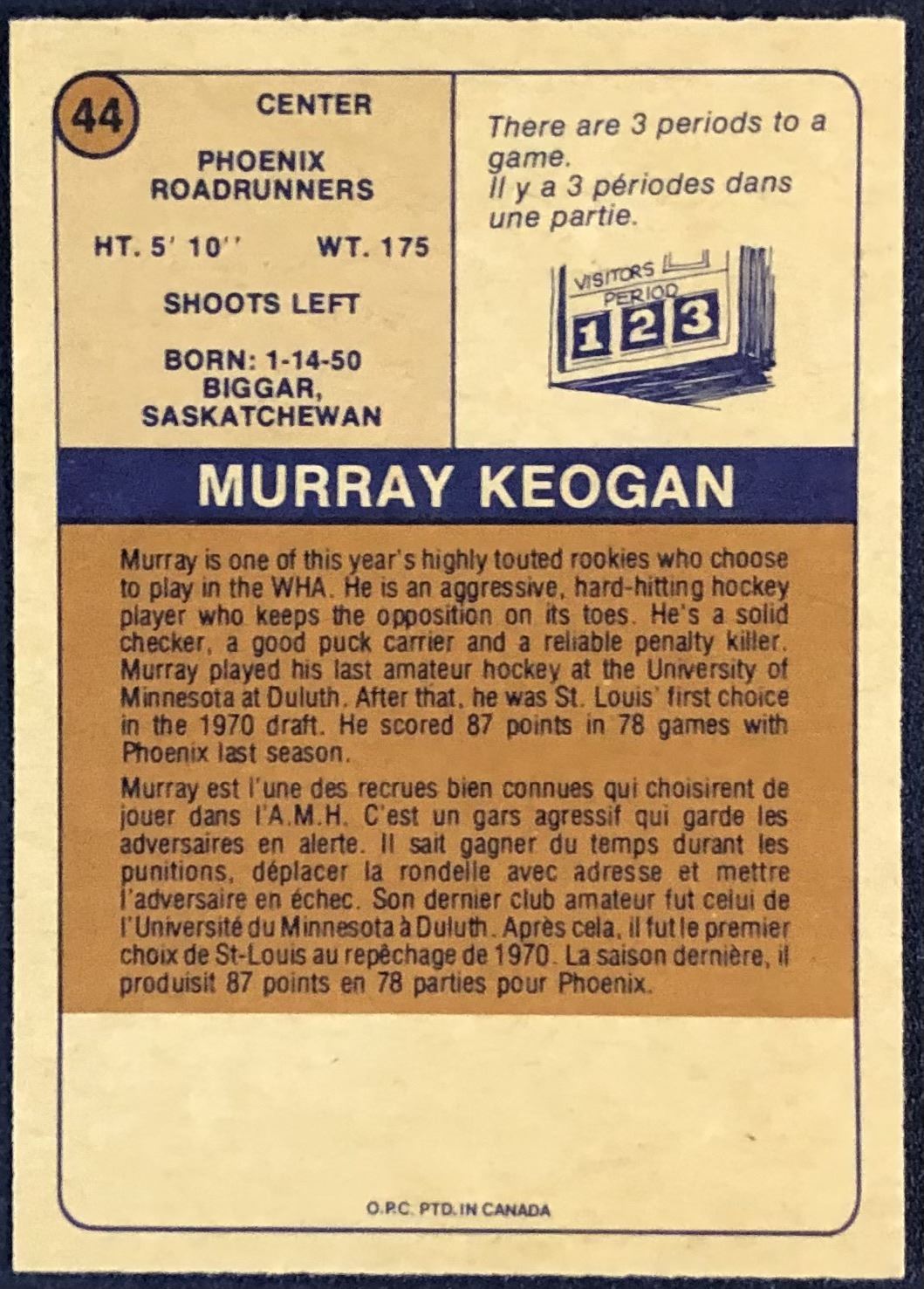 Lot 953 1974-75 O-PEE-CHEE WHA MURRAY KEOGAN ROOKIE CARD