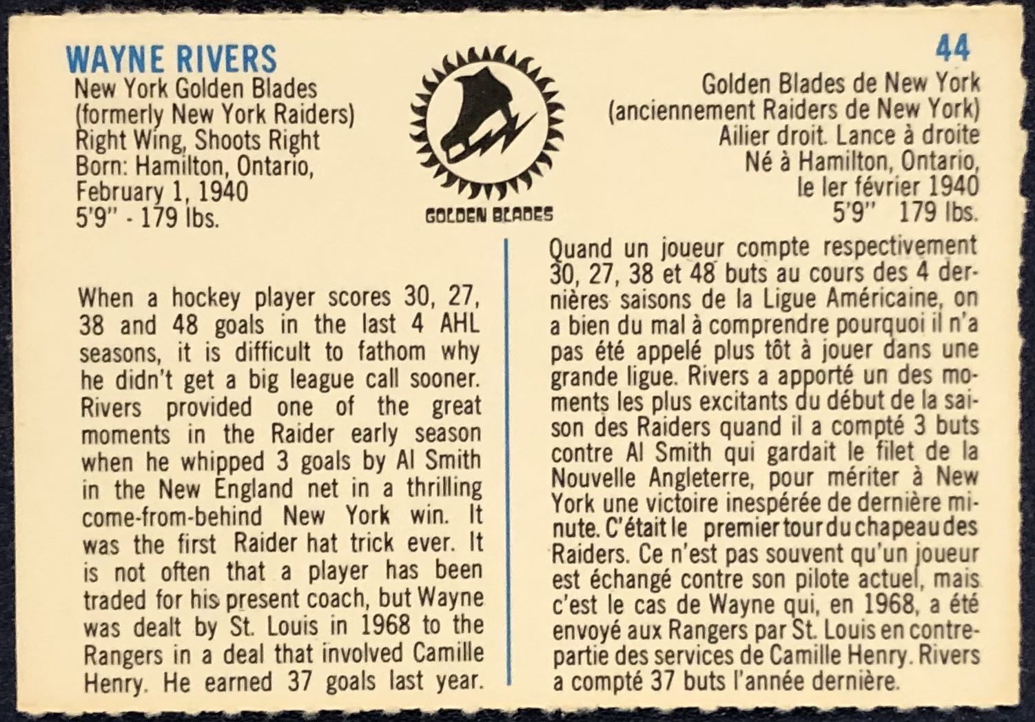 Card #44 WHA, hockey, vintage, regional