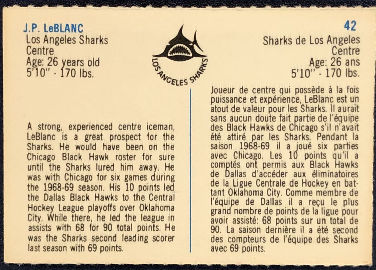 Card #42 WHA, hockey, vintage, regional