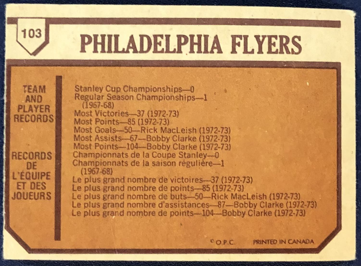 Lot 983 1973-74 O-PEE-CHEE NHL PHILADELPHIA FLYERS