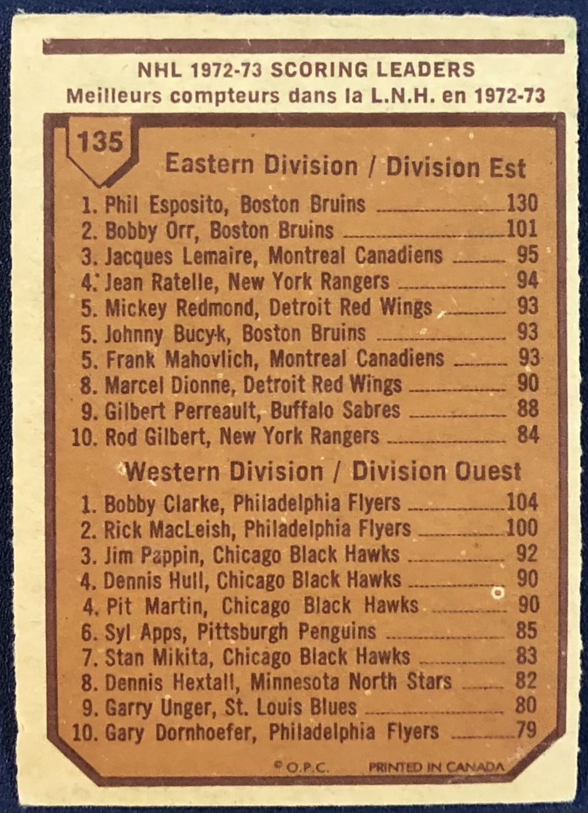 Lot 984 1973-74 O-PEE-CHEE NHL PHIL ESPOSITO / BOBBY CLARKE (HOF)