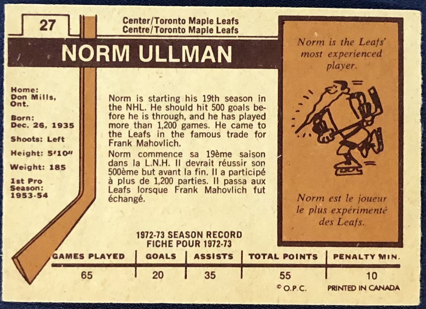 Lot 990 1973-74 O-PEE-CHEE NHL NORM ULLMAN (HOF)