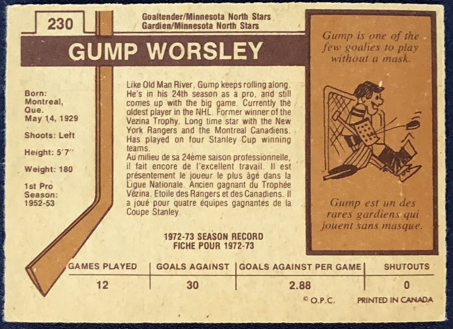 Lot 1004 1973-74 O-PEE-CHEE NHL GUMP WORSLEY (HOF)