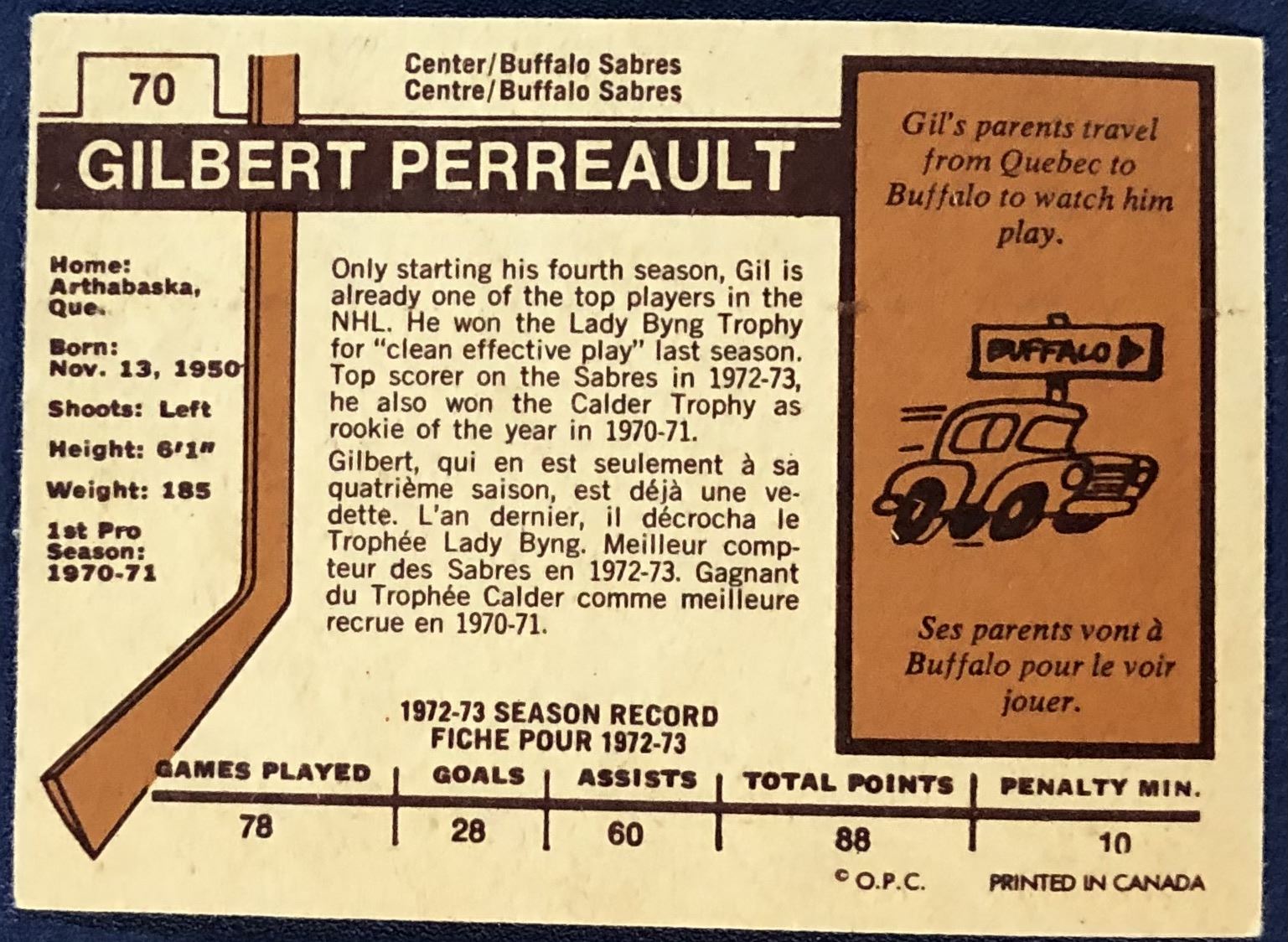 Lot 1005 1973-74 O-PEE-CHEE NHL GILBERT PERREAULT (HOF)