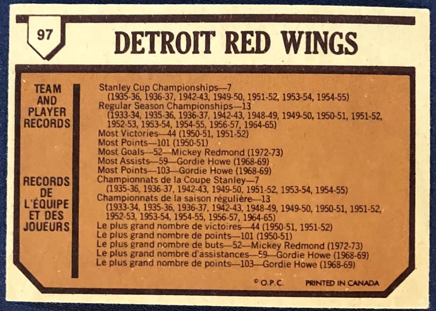 Lot 1009 1973-74 O-PEE-CHEE NHL DETROIT RED WINGS