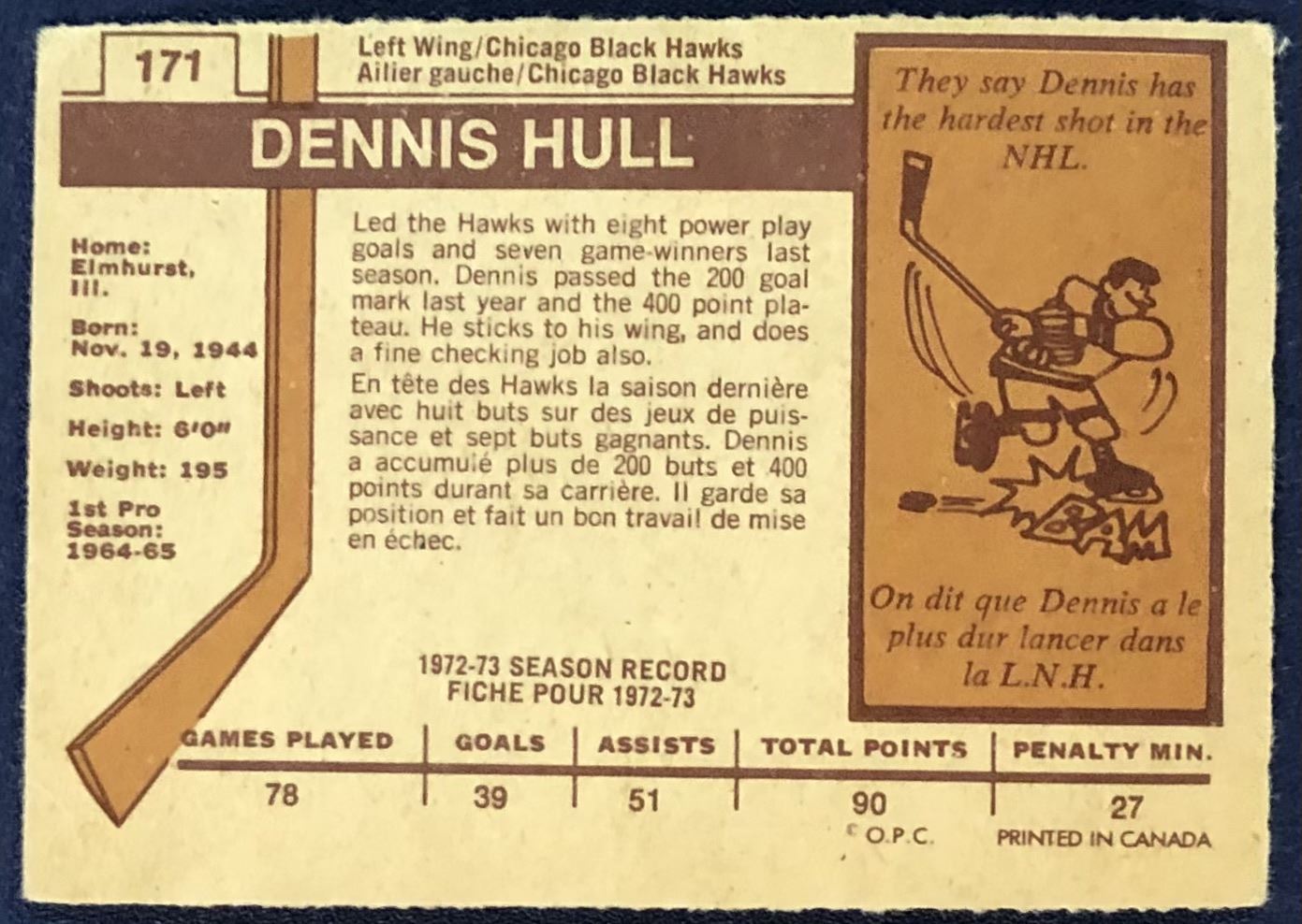 Lot 1011 1973-74 O-PEE-CHEE NHL DENNIS HULL