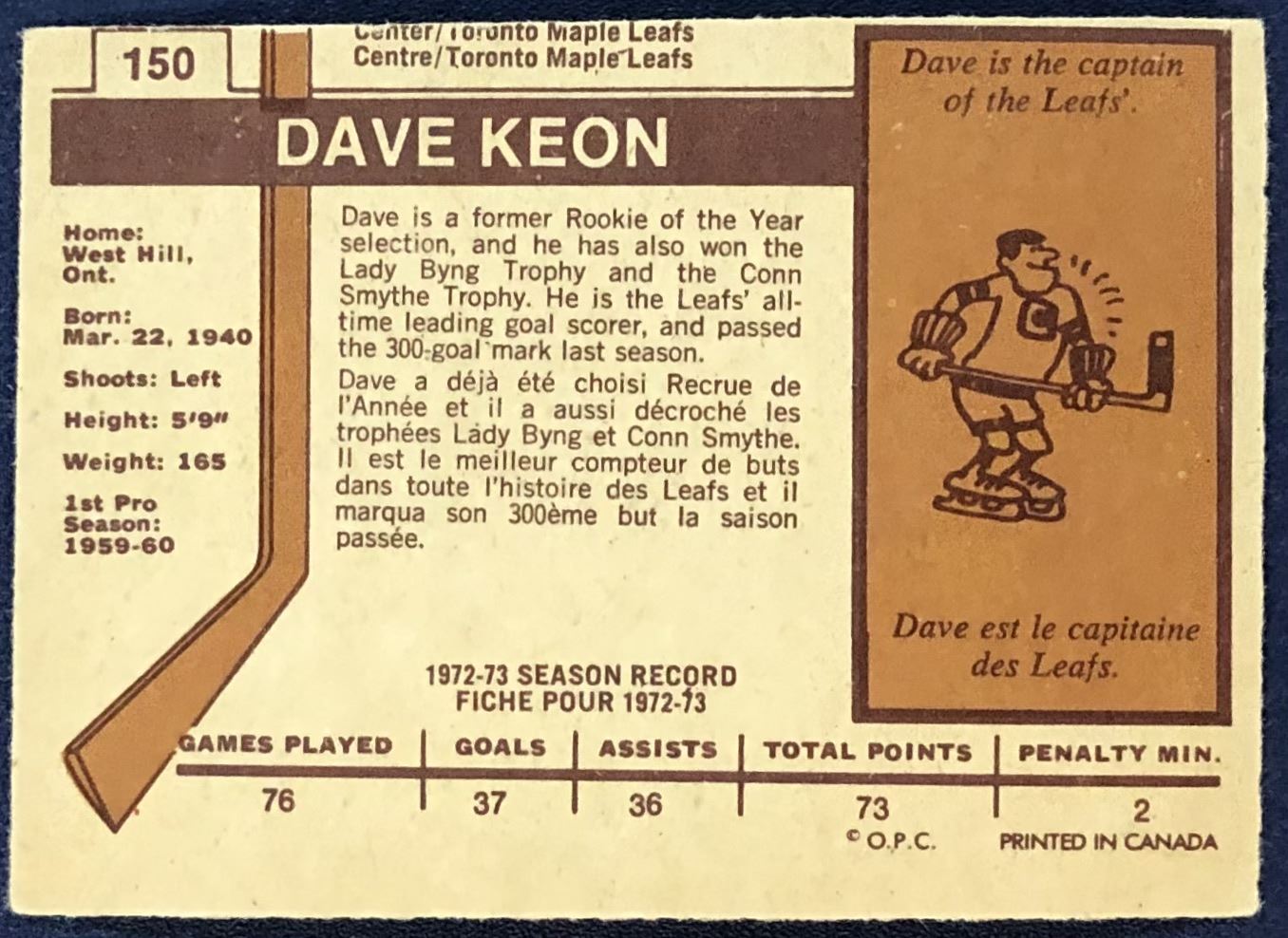 Lot 1013 1973-74 O-PEE-CHEE NHL DAVE KEON (HOF)