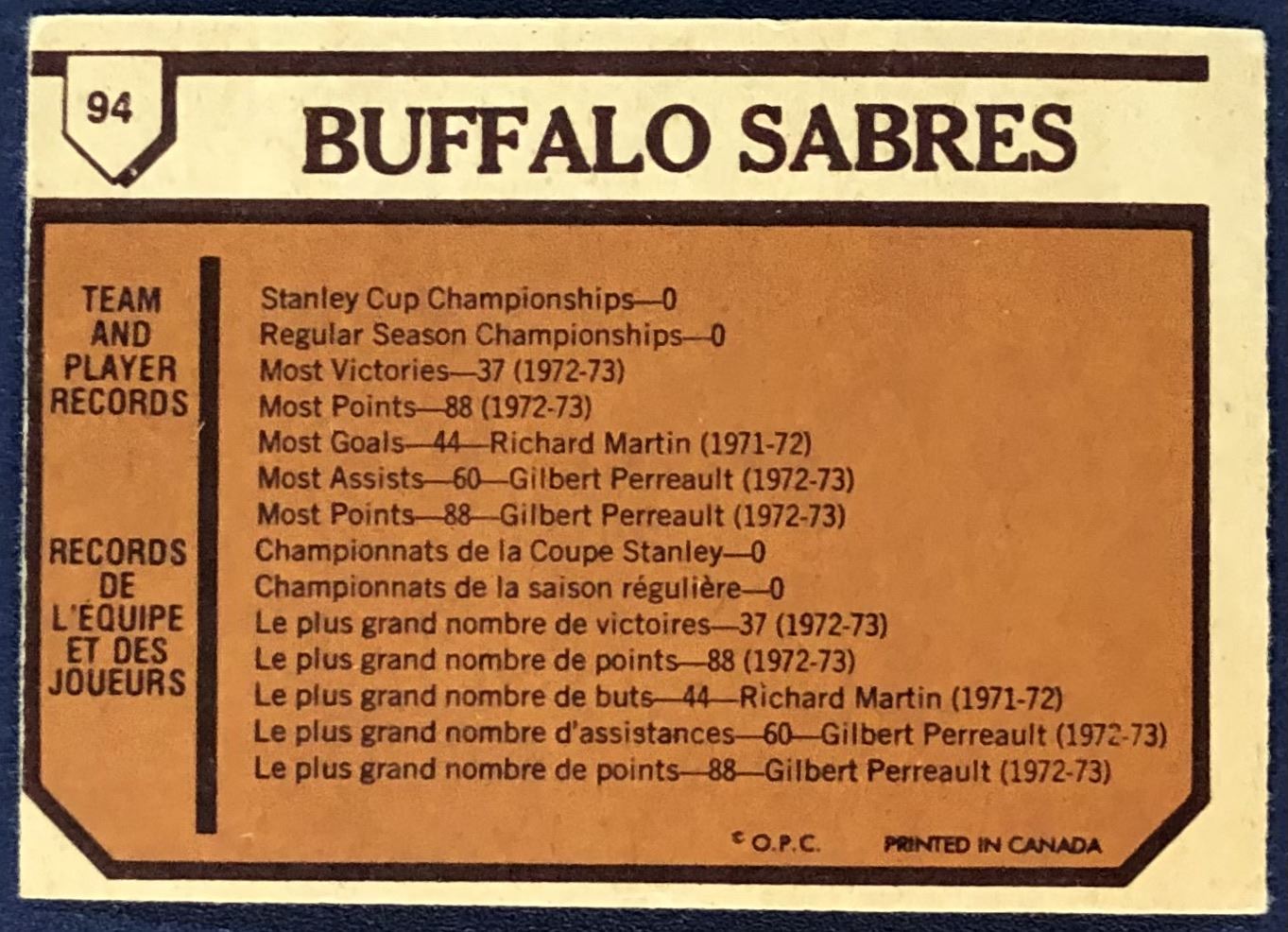 Lot 1017 1973-74 O-PEE-CHEE NHL BUFFALO SABRES