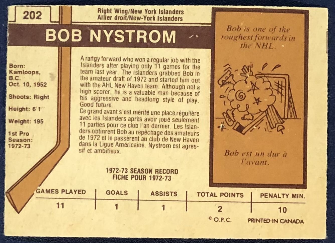 Lot 1021 1973-74 O-PEE-CHEE NHL BOB NYSTROM ROOKIE CARD