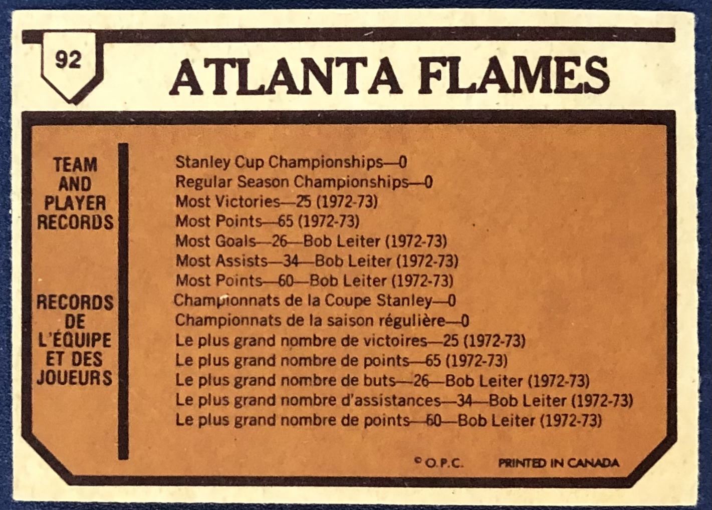 Lot 1024 1973-74 O-PEE-CHEE NHL ATLANTA FLAMES