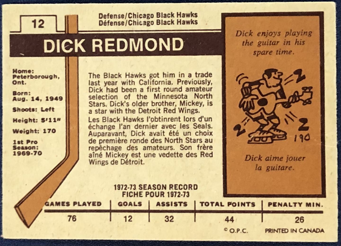 Lot 1029 1973-74 O-PEE-CHEE DICK REDMOND