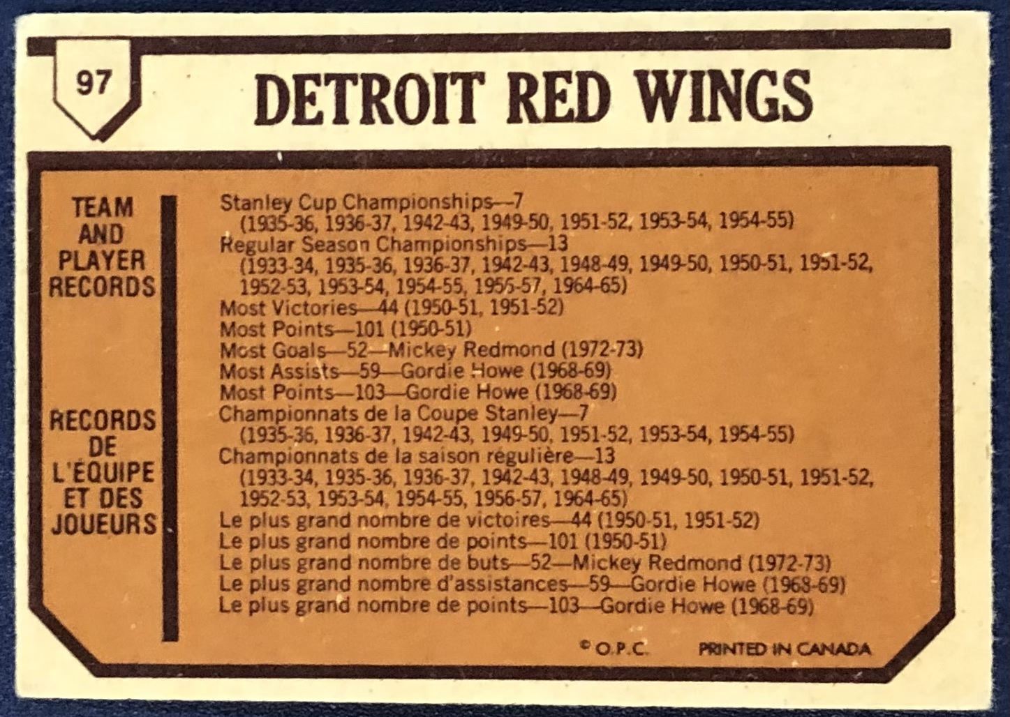 Lot 1030 1973-74 O-PEE-CHEE DETROIT RED WINGS