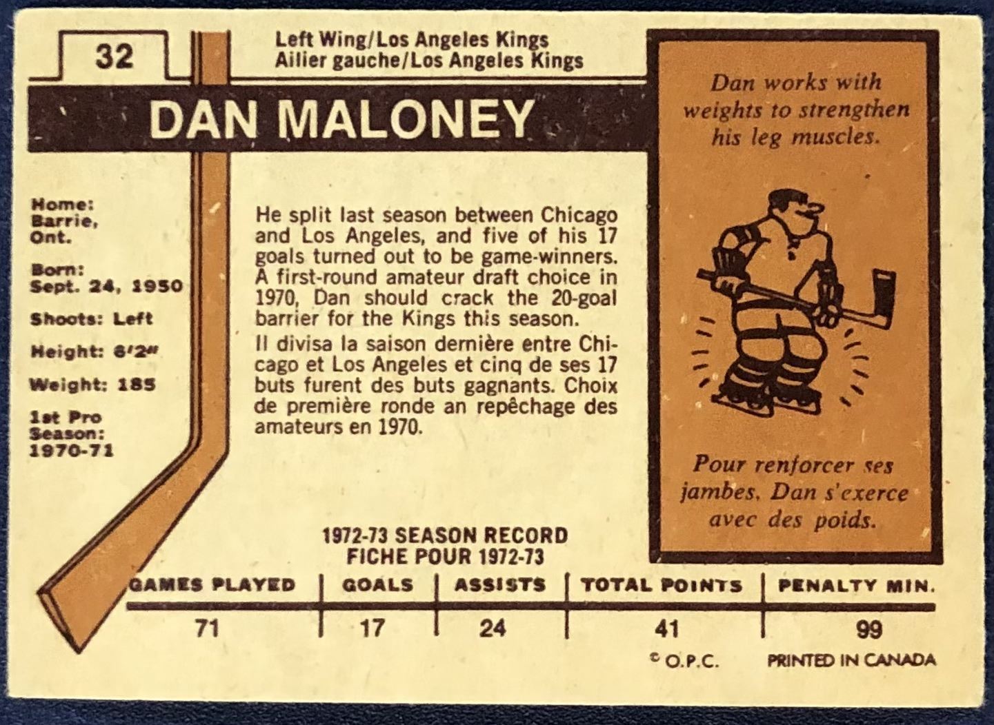 Lot 1031 1973-74 O-PEE-CHEE DAN MALONEY