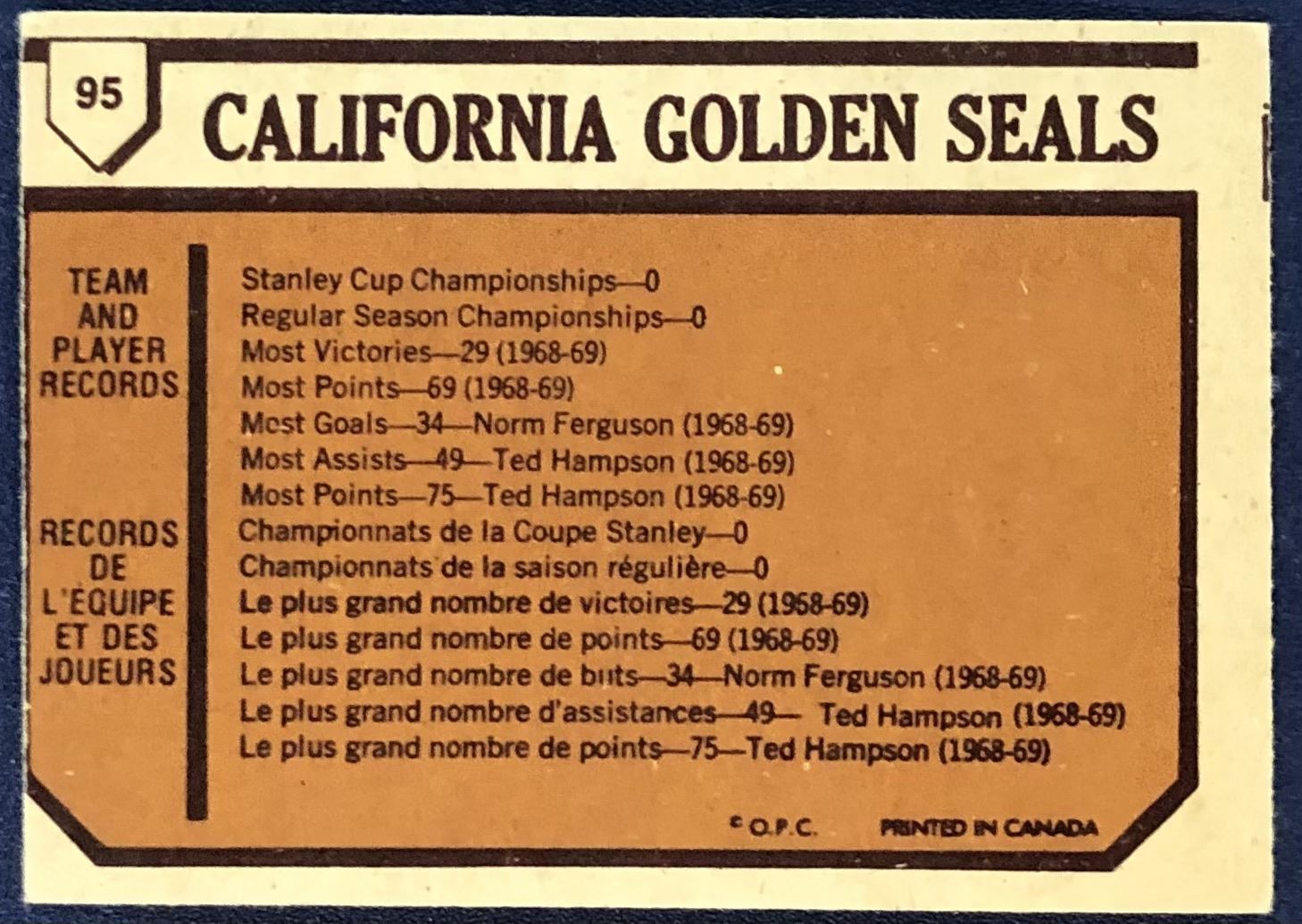 Card #95 NHL, hockey, vintage, OPC