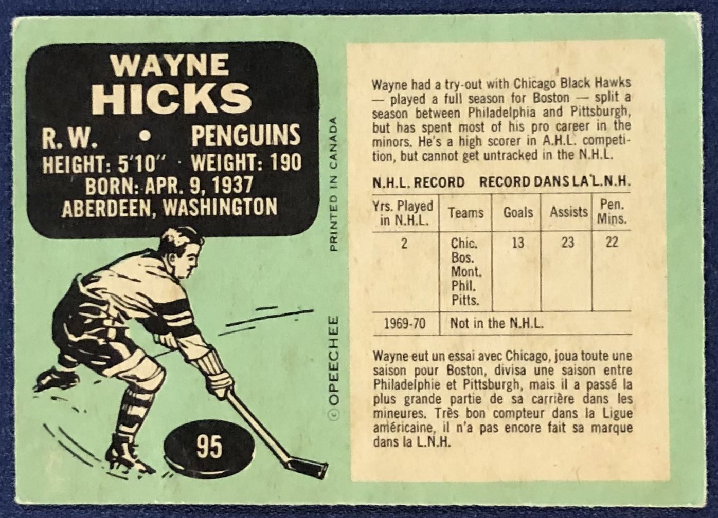 Card #95 NHL, hockey, vintage, OPC