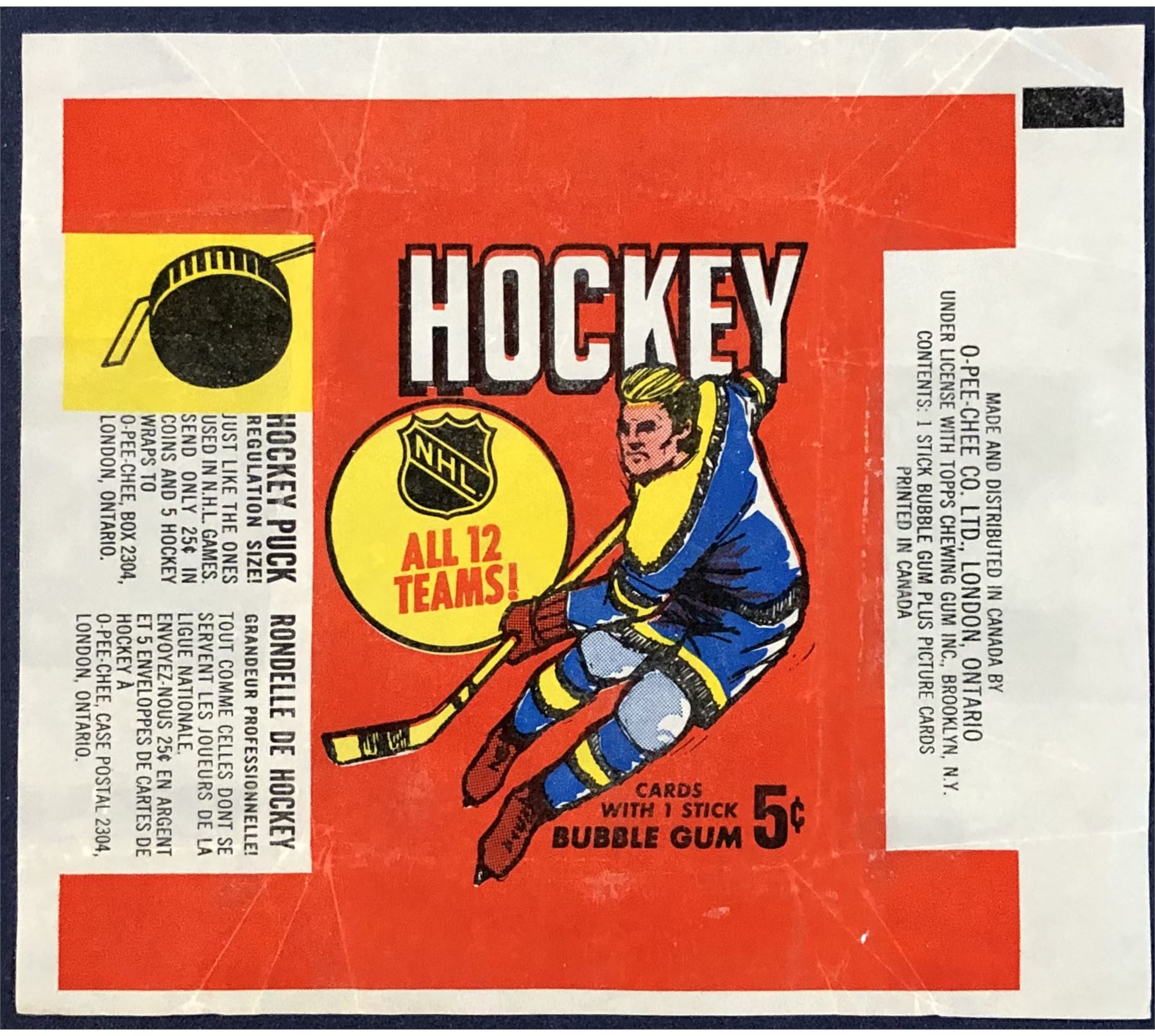 Lot 1078 1968-69 O-PEE-CHEE HOCKEY WRAPPER