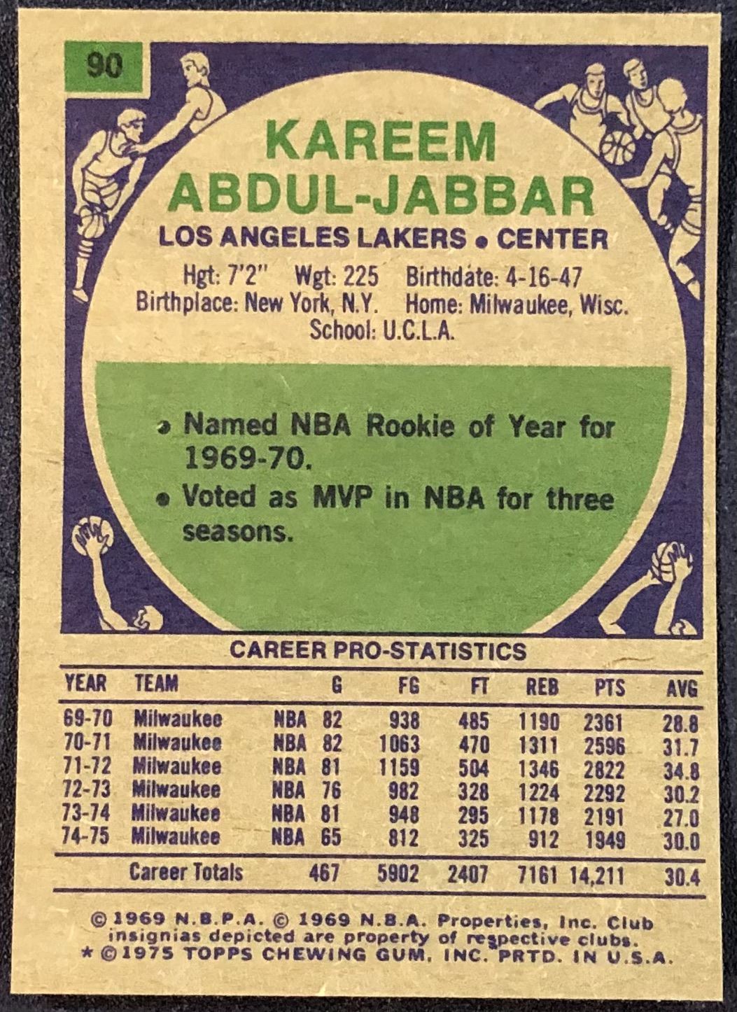 Lot 1079 1975-76 TOPPS KAREEM ABDUL-JABBAR (HOF)