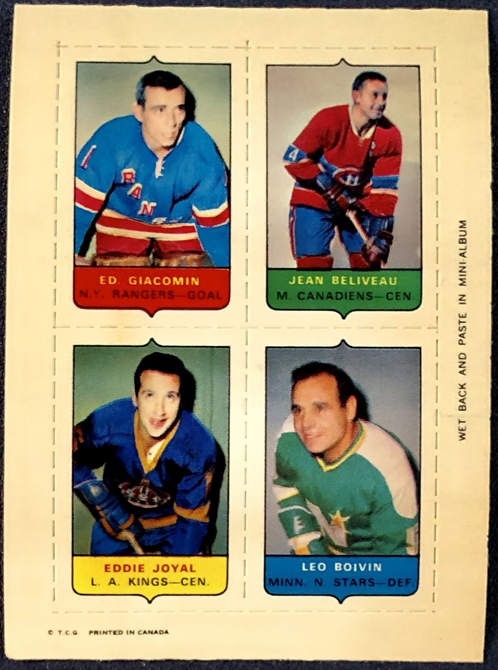 1969 O-PEE-CHEE HOCKEY 4-IN-1 JEAN BELIVEAU (HOF)