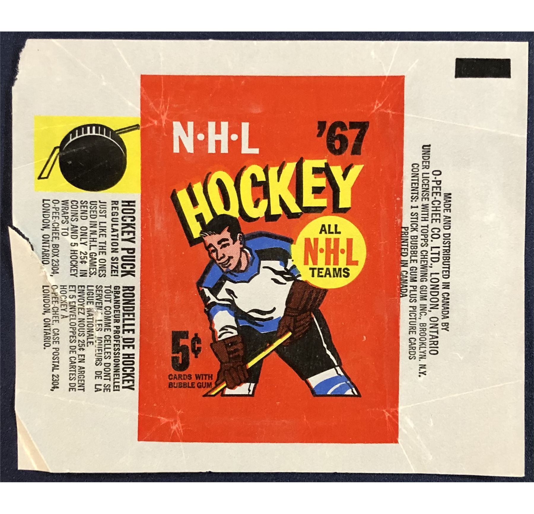 Lot 1196 1966-67 O-PEE-CHEE HOCKEY WRAPPER - BOBBY ORR ROOKIE YEAR