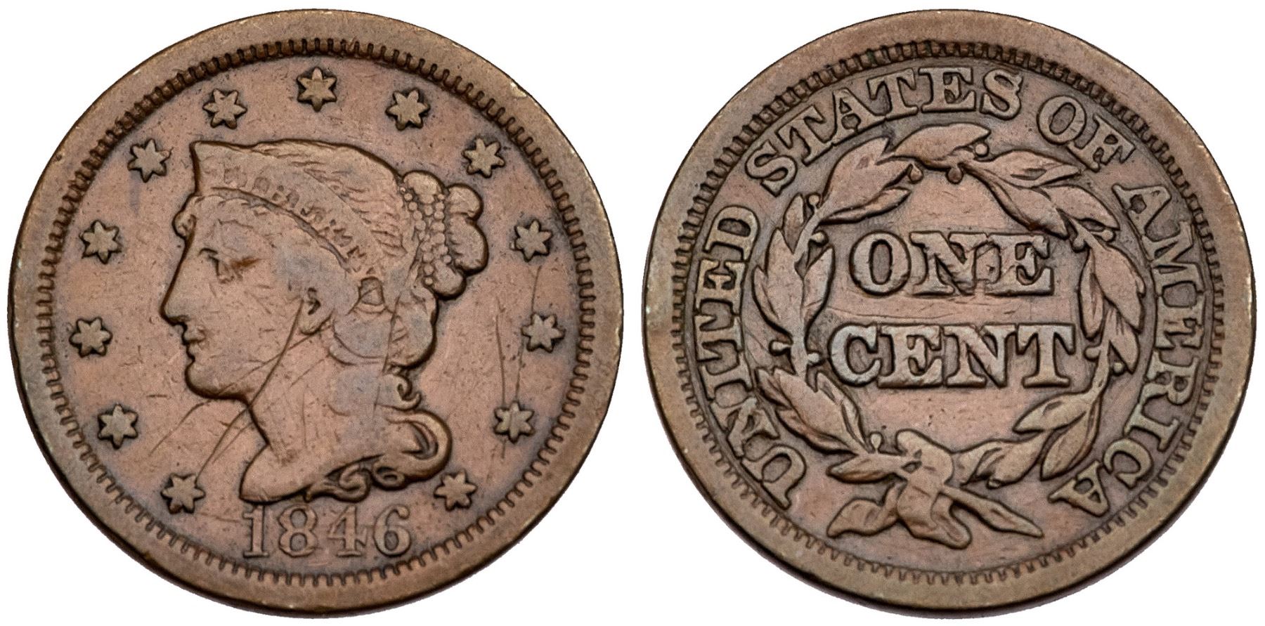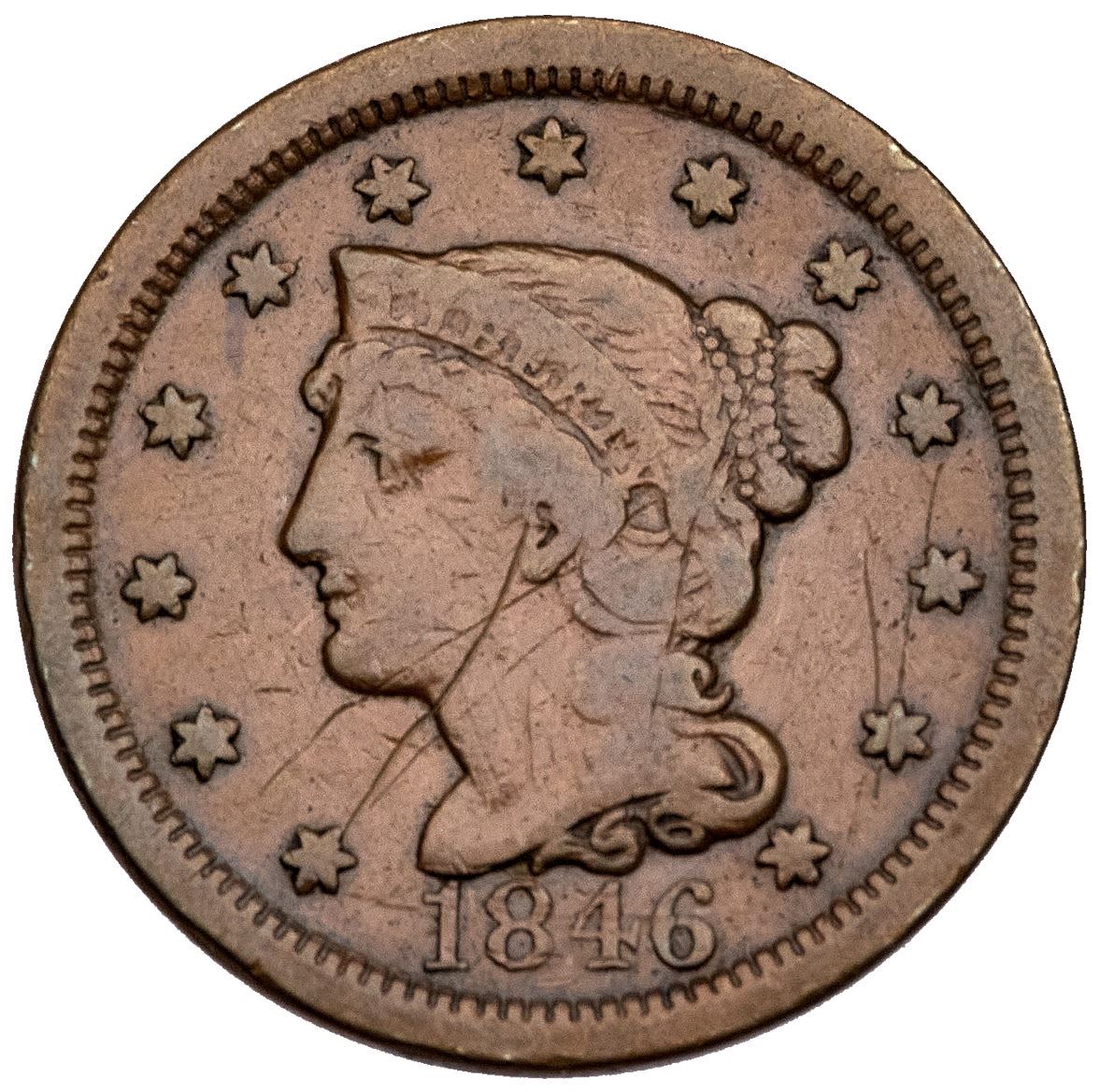 1846 N-26 R-5+ Tall Date G6VG10 sharpness with light scratches on both sides and a rim dent at TE in UNITED. Glossy medium brown. MDS.Ex; J.R. Frankenfield Superior 2/2001:1360 - CVM 12/2006
