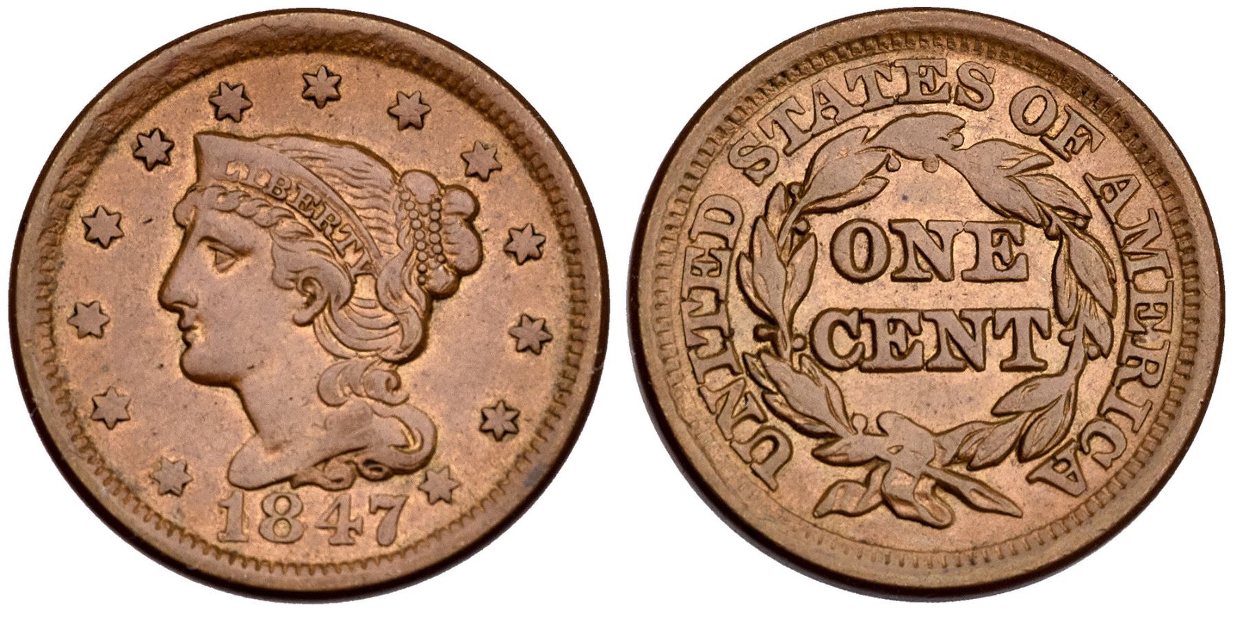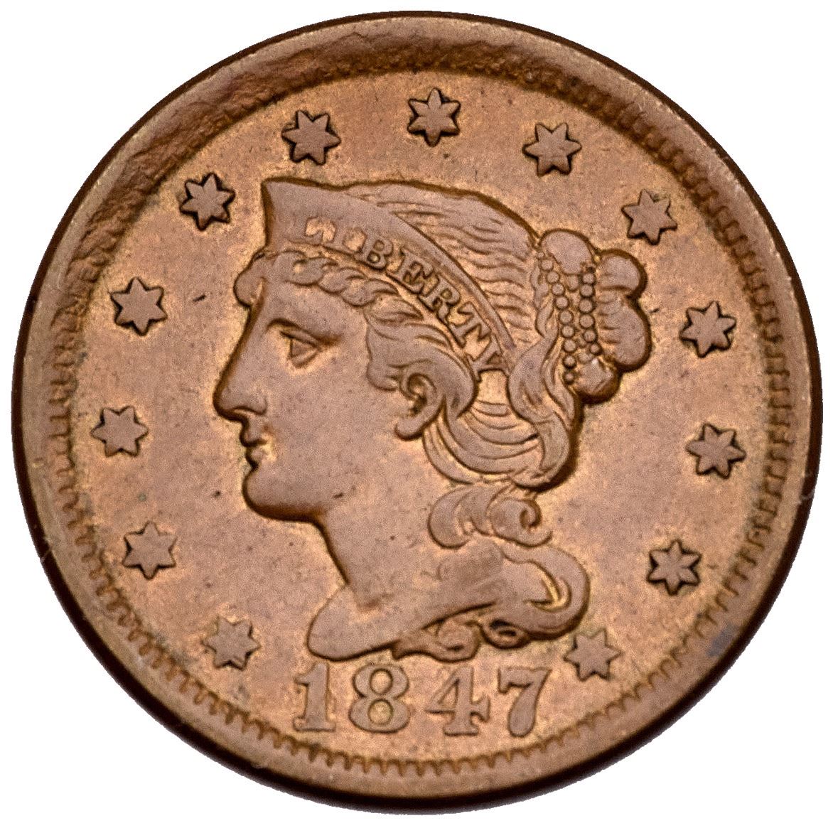 1847 N-19 R-1 VF35Glossy golden tan and light olive browns. Softly struck with flat areas on the devices, especially the wreath. Free of notable marks. LDS. Ex; CVM 12/2006