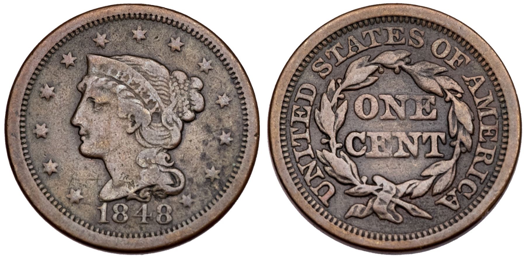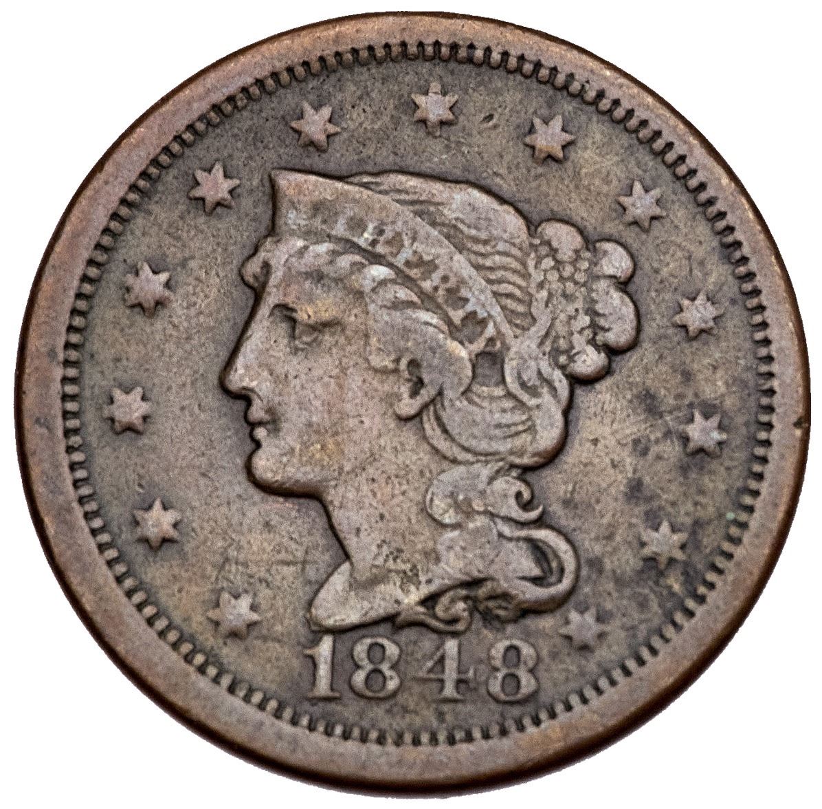 1848 N-26 R-5 VG10Fine sharpness but covered with microgranularity and there is an old diagonal scratch over star 11. Medium brown and olive with deeper steel in some protected areas. MDS, die state b. Ex; CVM 12/2006