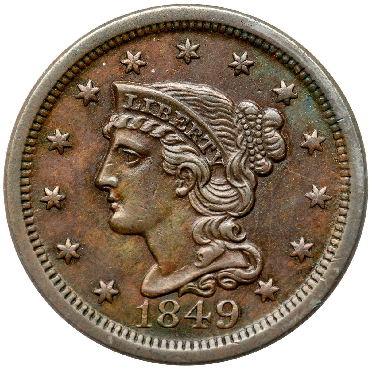 1849 N-8 R-1 ANACS EF45Medium olive and chocolate browns. Only the most trivial of marks on the portrait and field, nothing noteworthy or distracting. MDS, state b. Our grade is EF45.7341282