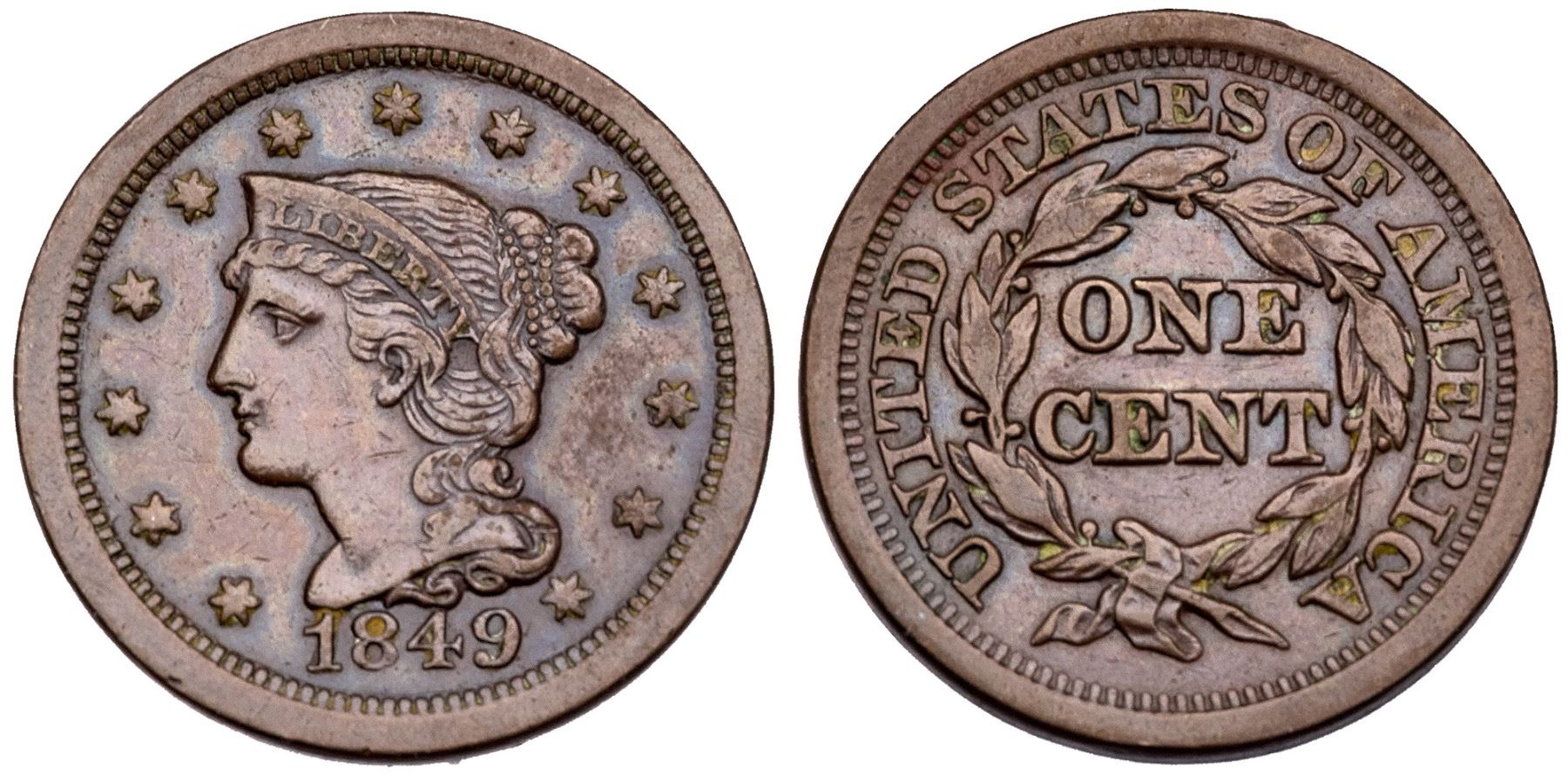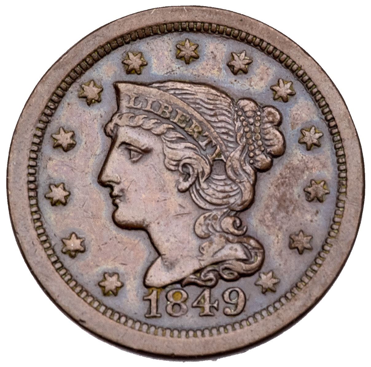 1849 N-16 R-5 VF25+Five points sharper but there are light contact marks on the obverse, including a thin horizontal nick on the neck and a dull, vertical scratch down the right side of the neck. Glossy medium brown and chocolate browns. MDS. Ex; Steve Fischer 10/1993 - Harry Colburn - Superior 5/2005:1856