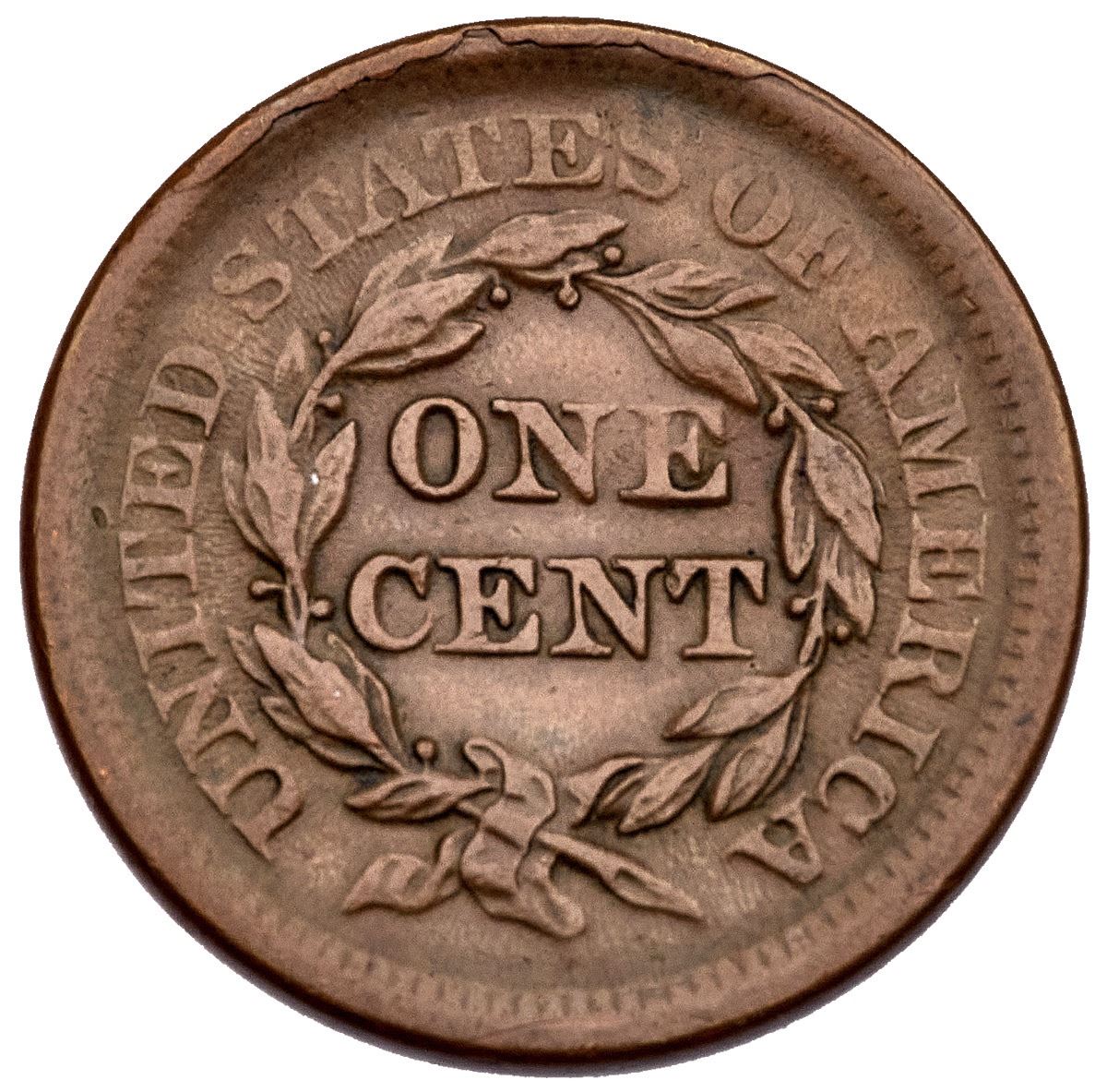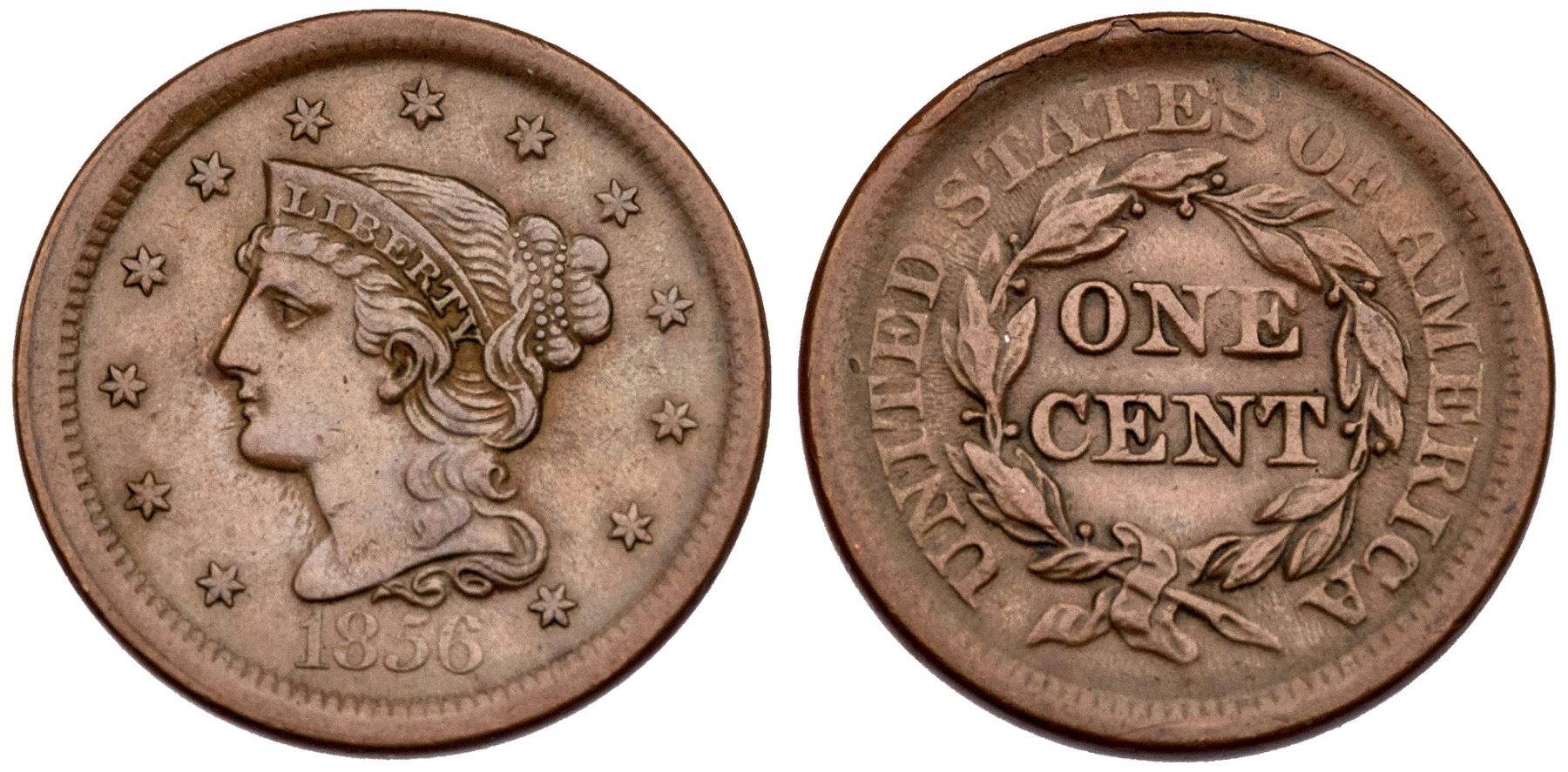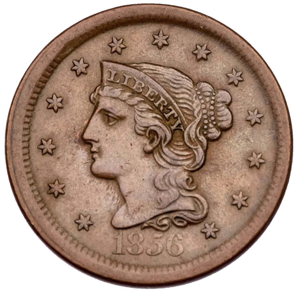 1856 N-1 R-1 VF35Medium olive brown. Choice for the grade, free of marks. LDS, state g, with both dies mushy and 5 reverse die breaks over D STATES. Ex; William C. Noyes 7/28/1985 - Jack H. Robinson Superior 1/1989:1808 - R.V.P. - Dan Holmes 2/2004