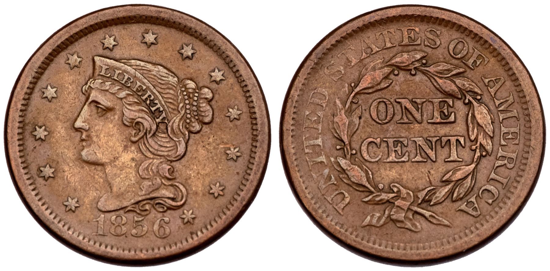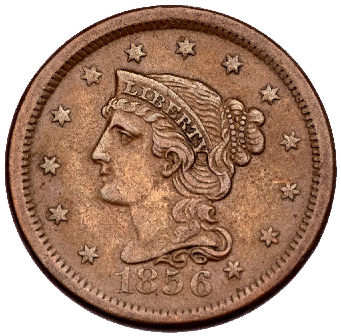 1856 N-6 R-1 VF30 Glossy light brown. A tiny nick above star 11 and a vertical one below N in CENT are the only marks. Smooth surfaces. LDS, state c. Ex; Tom Reynolds - R.V.P. - Dan Holmes 2/2004