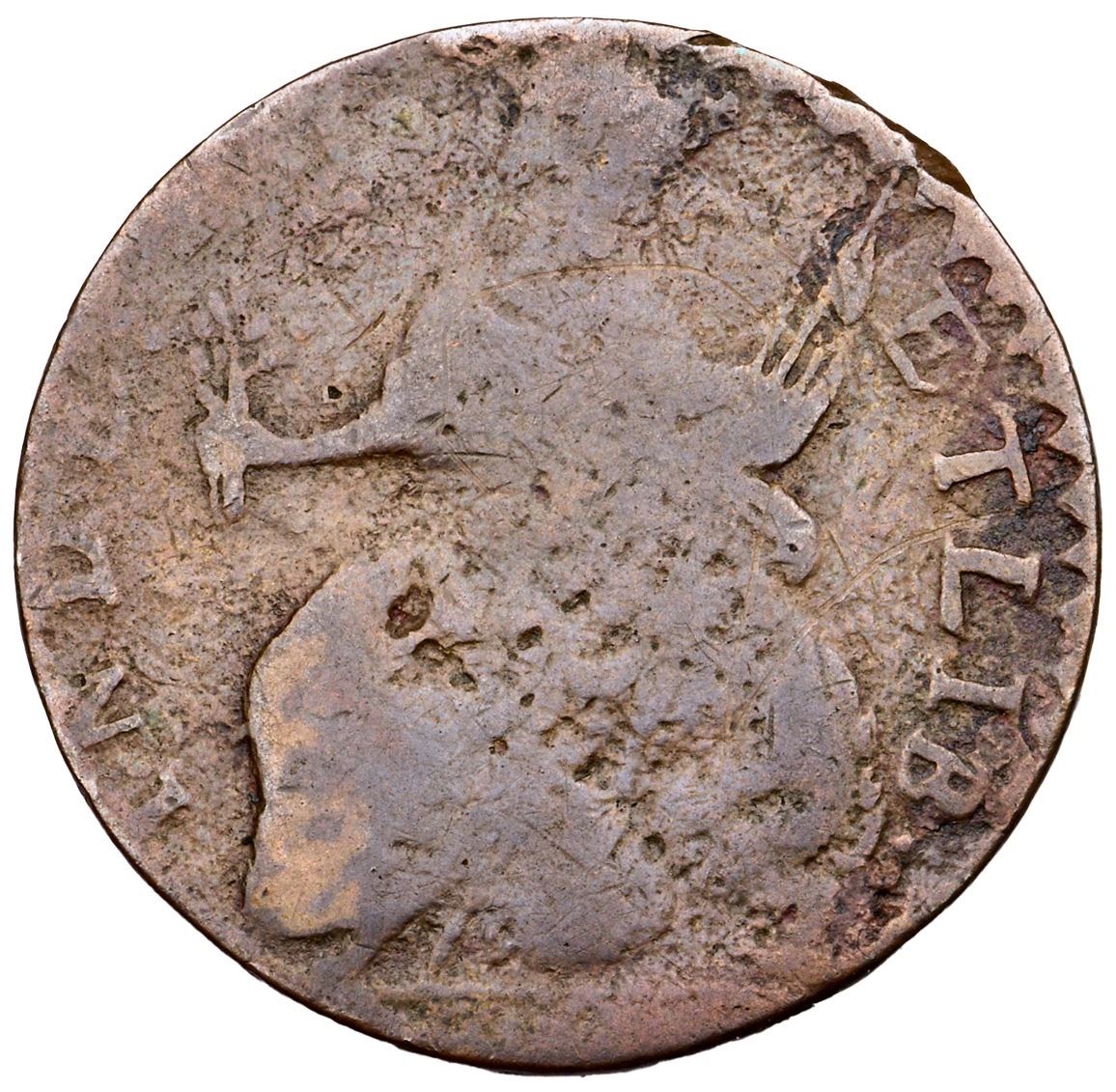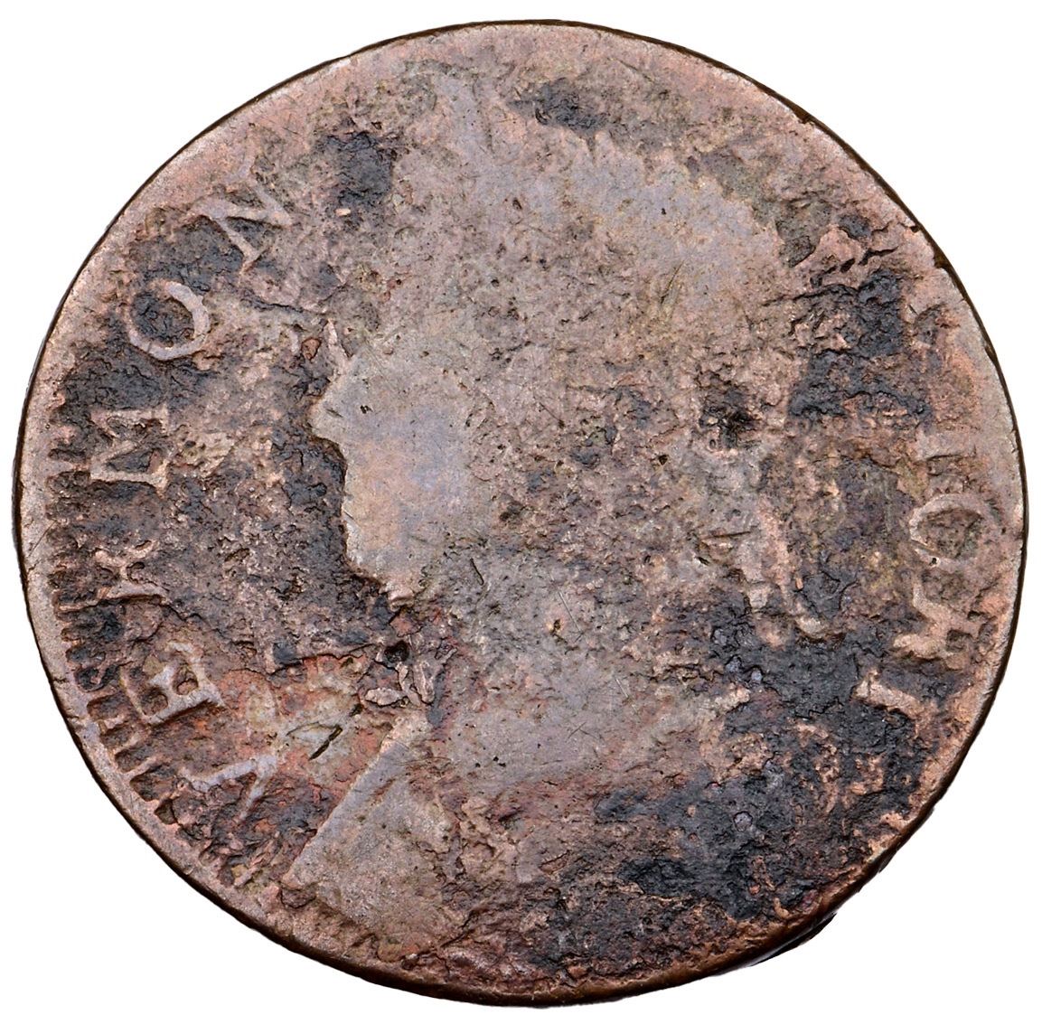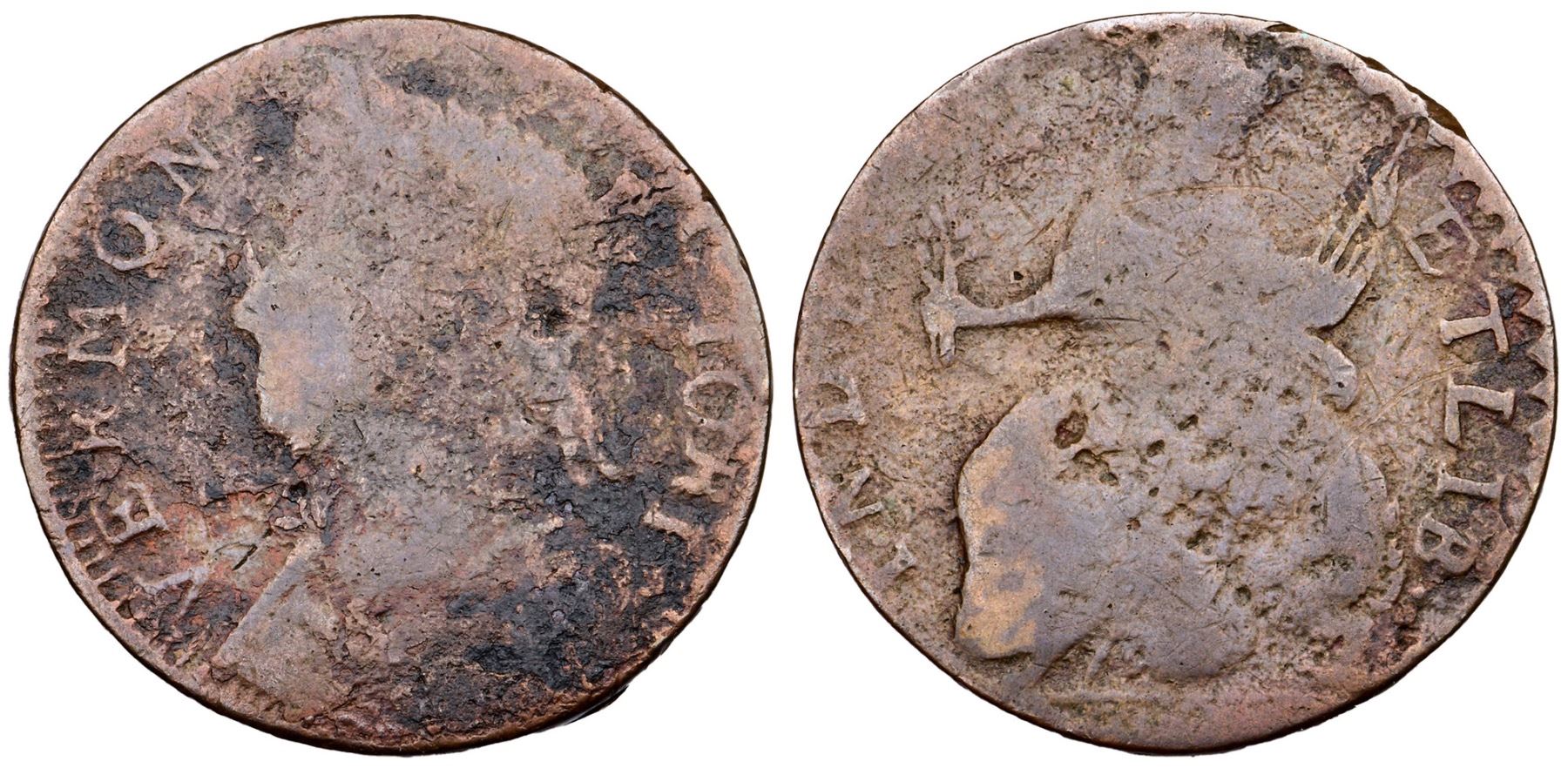 1786 RR-11 R-4 MBL Vermont AG3A few points sharper but corroded with moderate roughness and scale on the obverse, finer roughness with several pits on the reverse. There are also several hairline scratches on both sides. The date and AUC are gone but the remaining legends are readable and devices outlined. Ex; Doug Durasoff