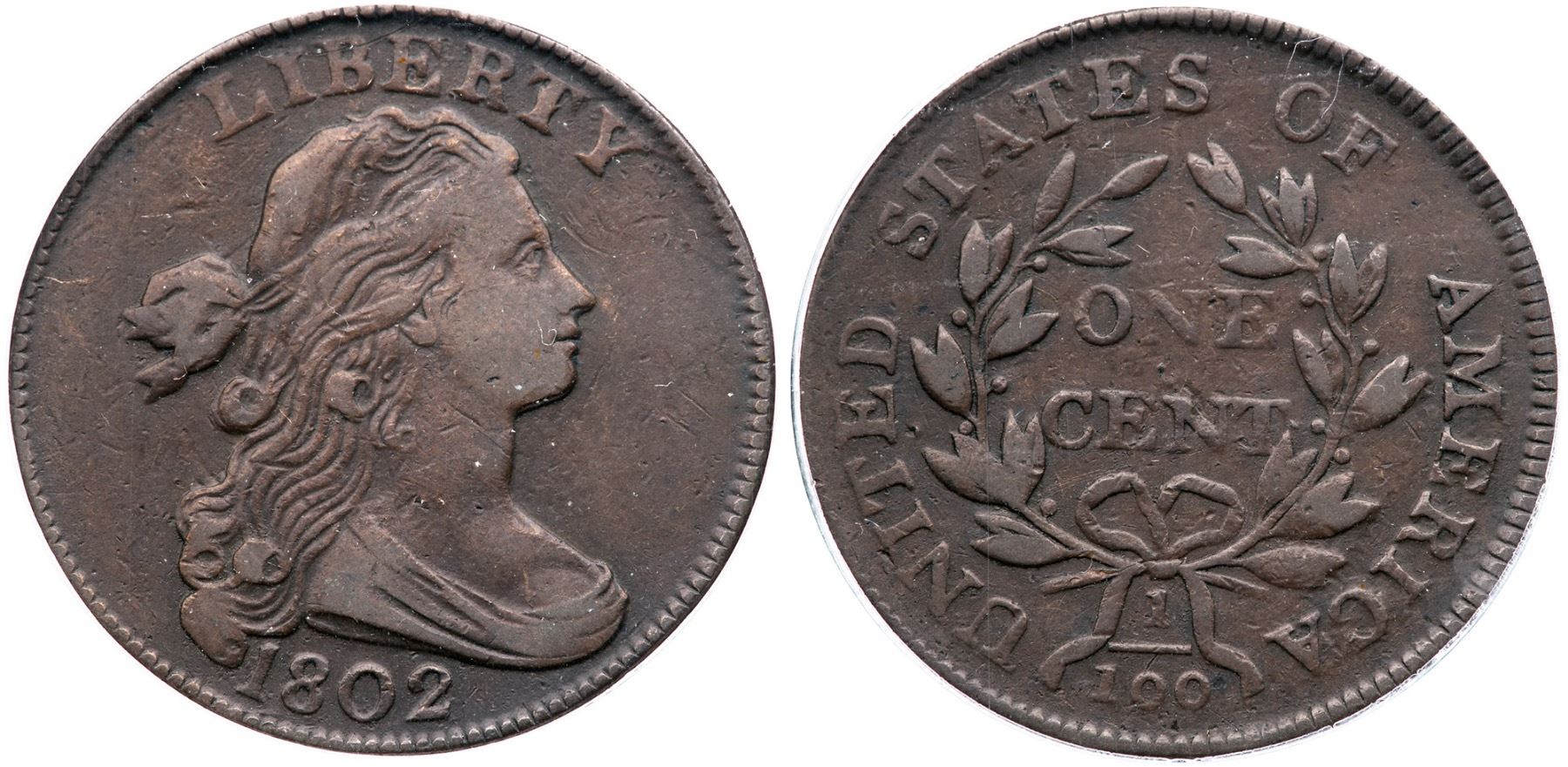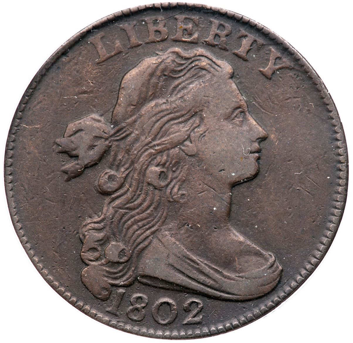 1802 S-232 R-1 PCGS VF30Attractive glossy chocolate brown with lighter steel on some high points. There is a small arc shaped pin scratch through the tops of IBE, no other notable marks. Smooth and attractive for the grade. MDS, Bren state IV. Our grade is F15. 20936110