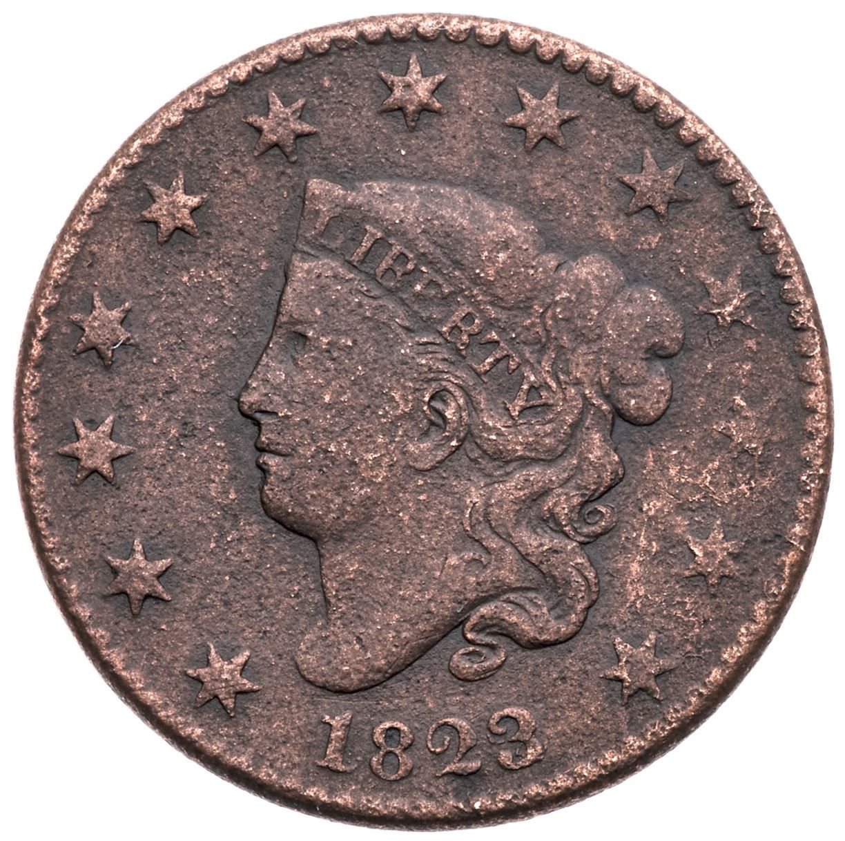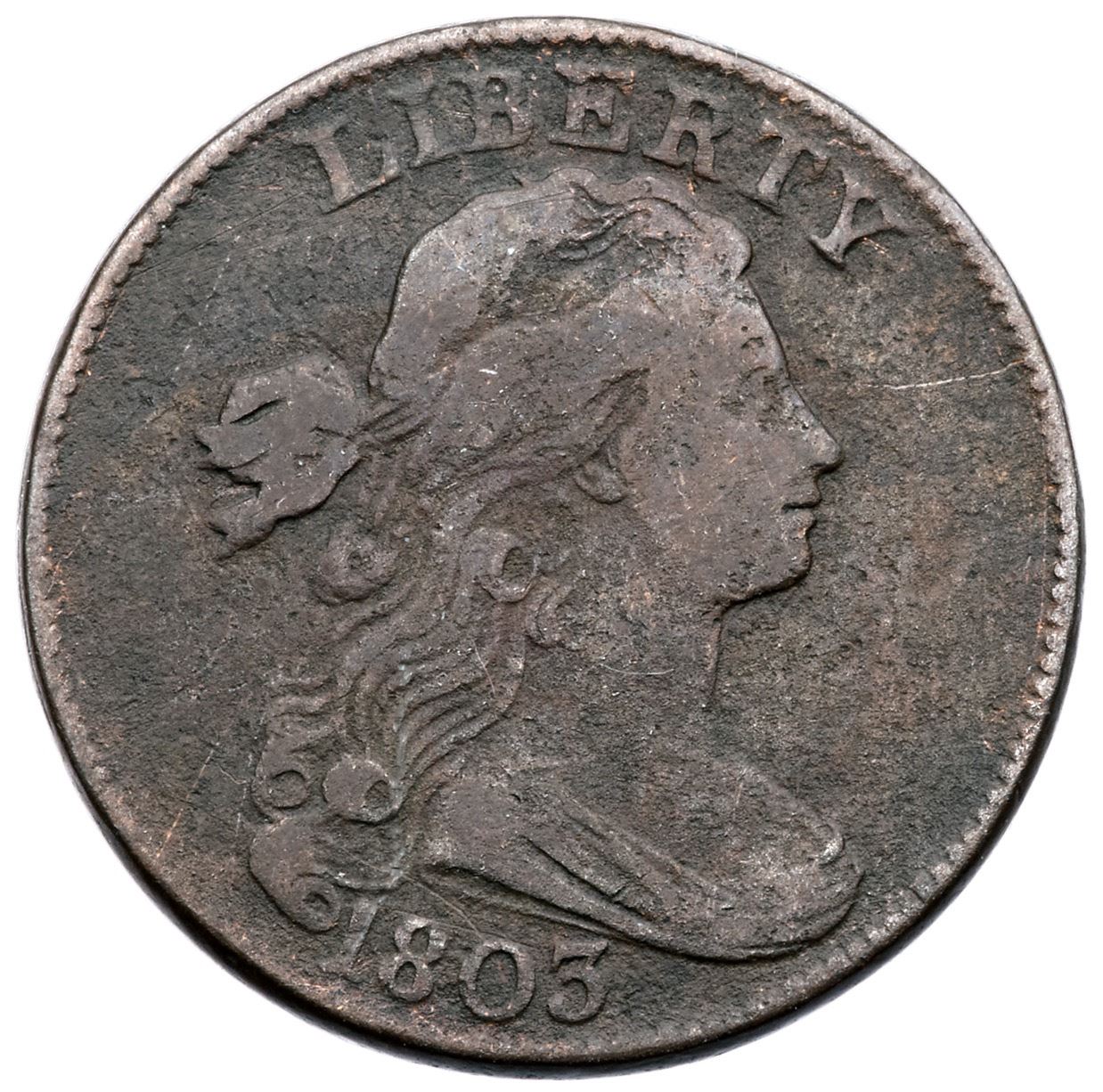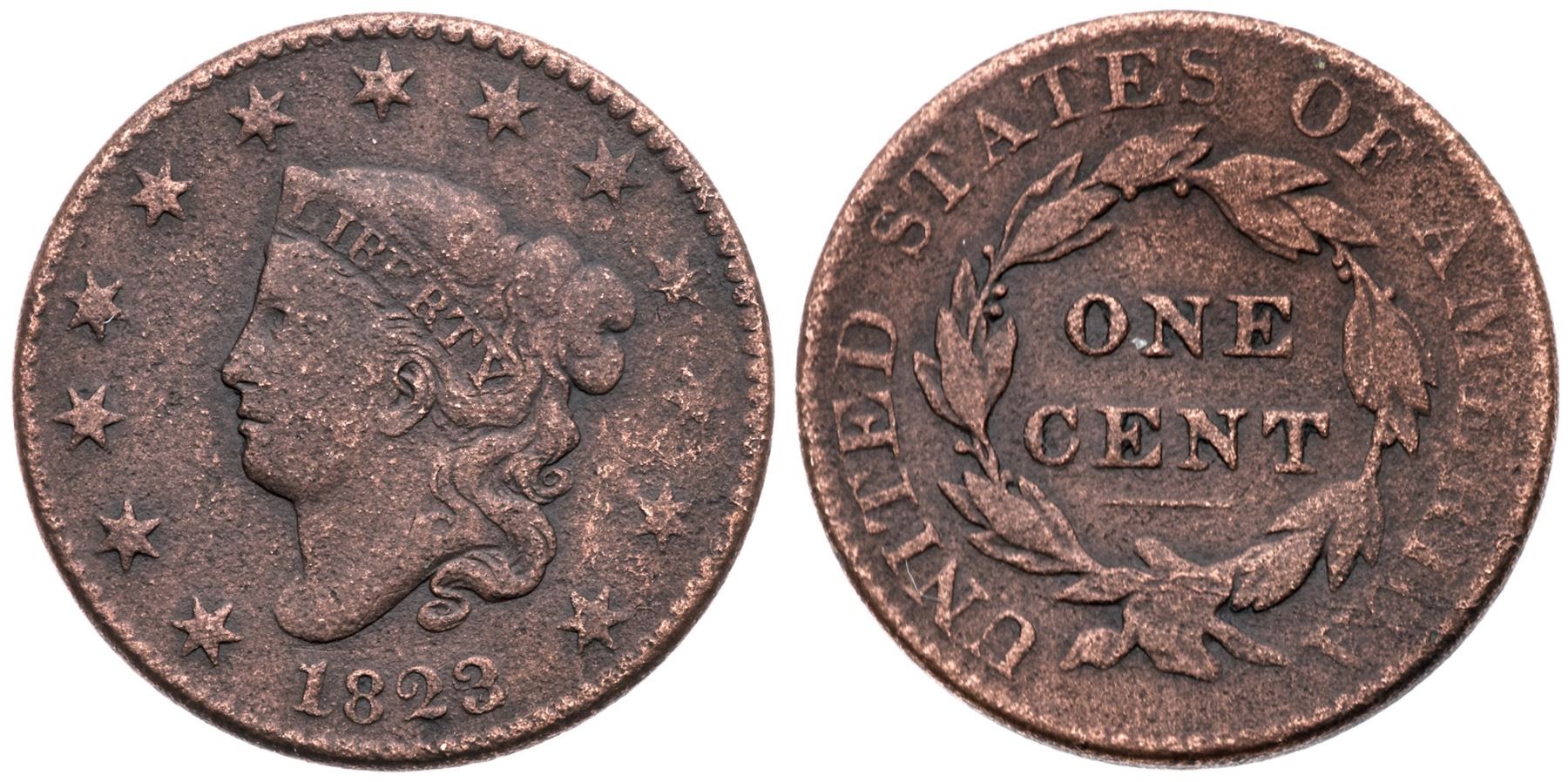Pair of 1803 & 1823/2 Large CentsPair of Large cents, including an 1803 S-243 R-2 EDS F12 net VG7 for granularity, and an 1823/2 N-1 R-2 F12 net G5 for granularity and cleaning.