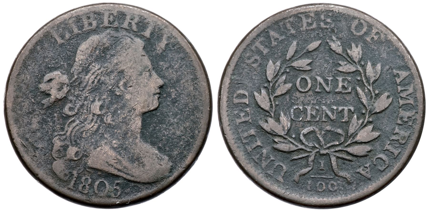 Pair of 1801 & 1805 Large CentsPair of Large cents, including an 1801 S-224 R-1 MDS G6, and an 1805 S-269 R-1 VG10 net G6 for light corrosion.