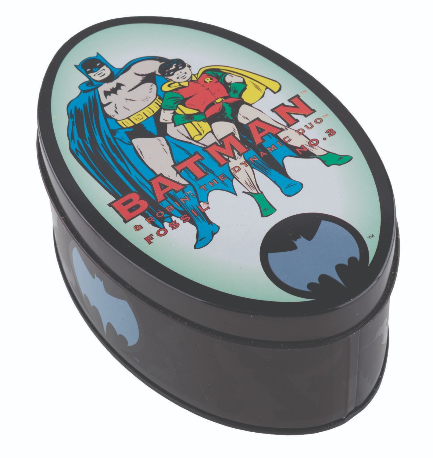 (Fossil, 1994) A limited edition collector's watch featuring Batman and Robin, in its tin case. The watch and tin are in fine condition, requiring a battery and possibly service to function.