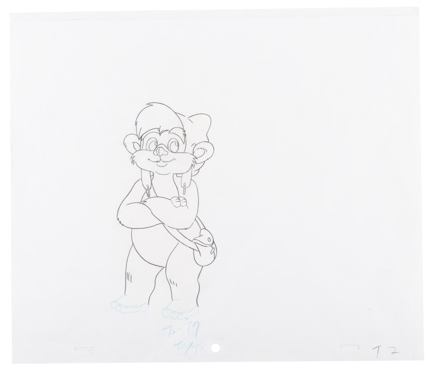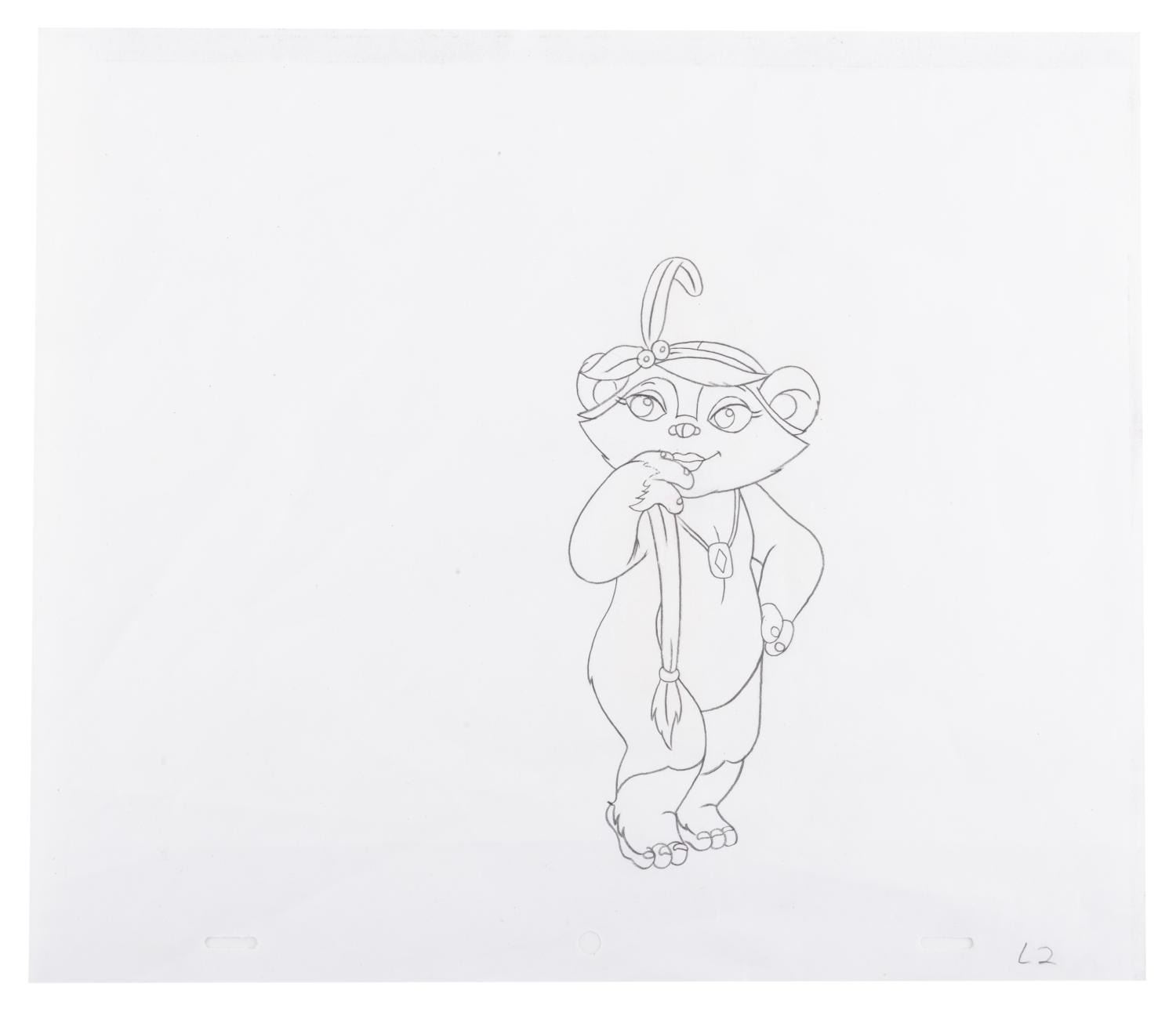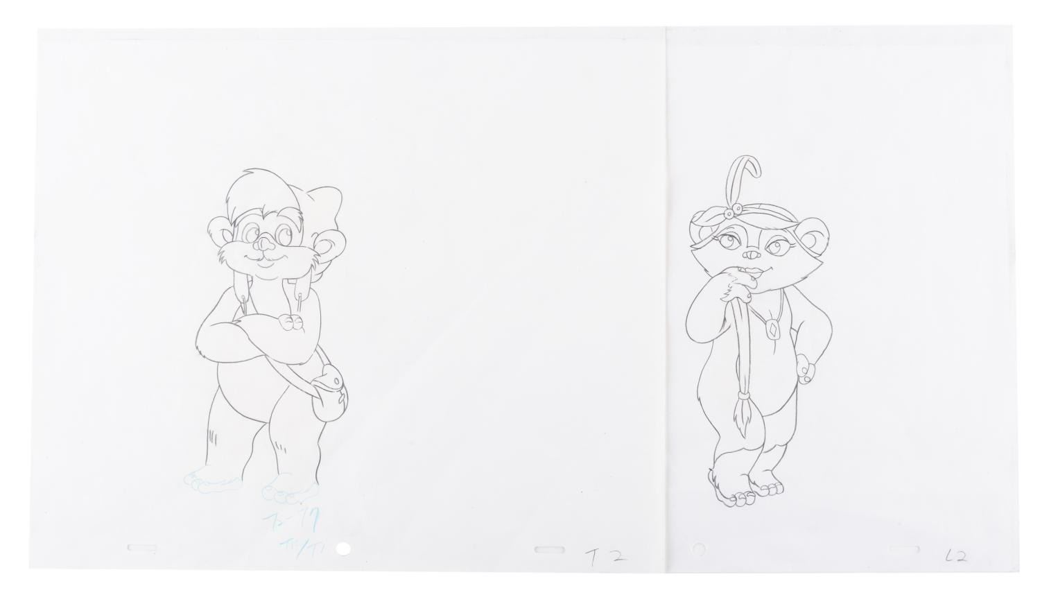 (Lucasfilm Ltd., 1985-86) A pair of original production drawings of Teebo and Latara from "Star Wars: Ewoks. " With image sizes ranging from 3 " x 6.5 " to 3 " x 7 " on 10.5 " x 12.5 " animation paper, the graphite and colored pencil drawings are in good condition with creases and wear from production use.