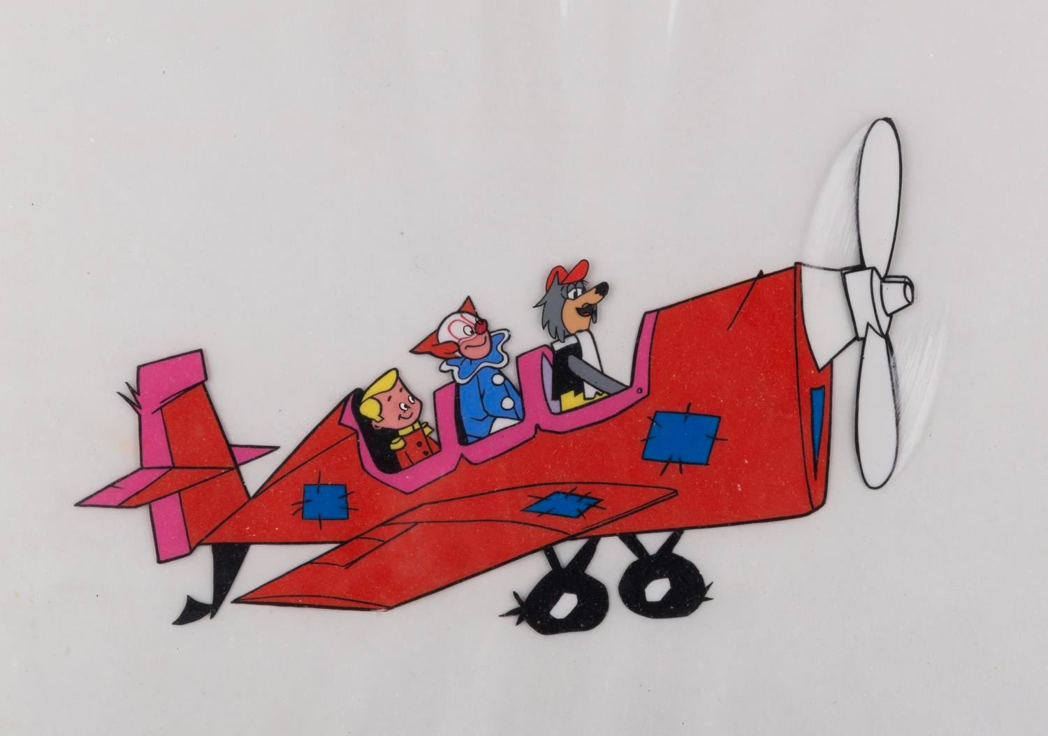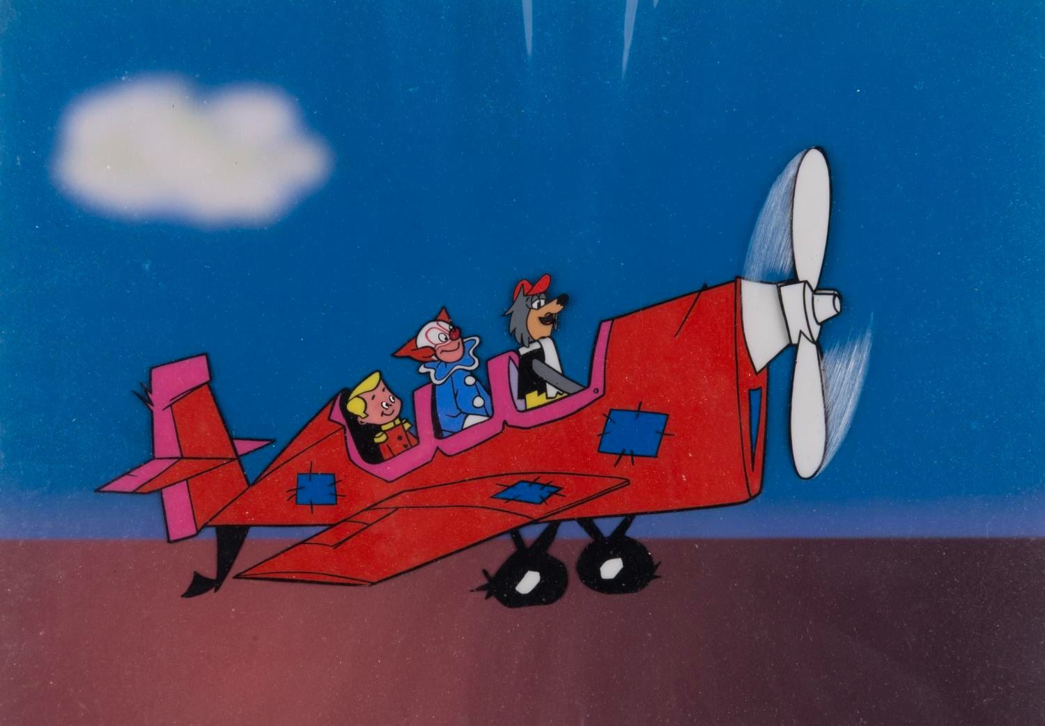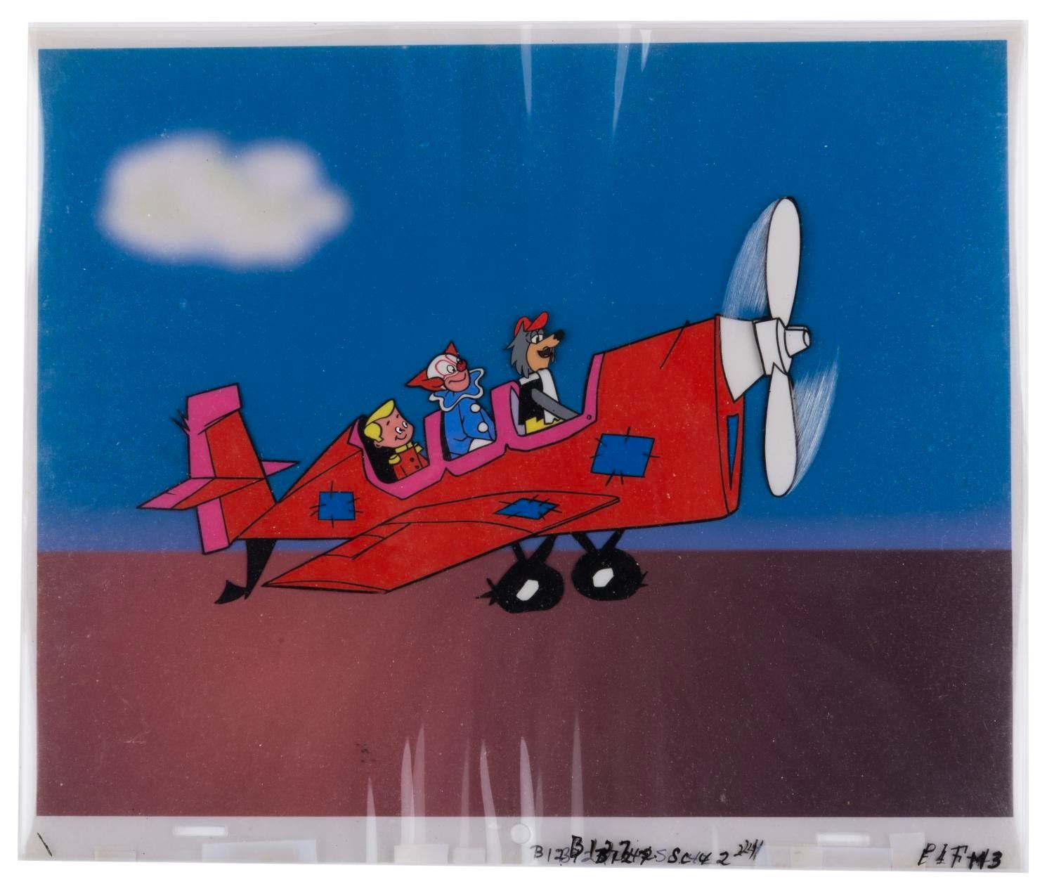 (Larry Harmon Pictures, 1958-62) A multi-layer production cel from the animated series "Bozo: The World's Most Famous Clown, " with a color copy background. With an image size of 5.5 " x 8.75 " on 10.5 " x 12.5 " cels, the art displays in very good condition with scratches, spots of paint loss, and wear from production use.