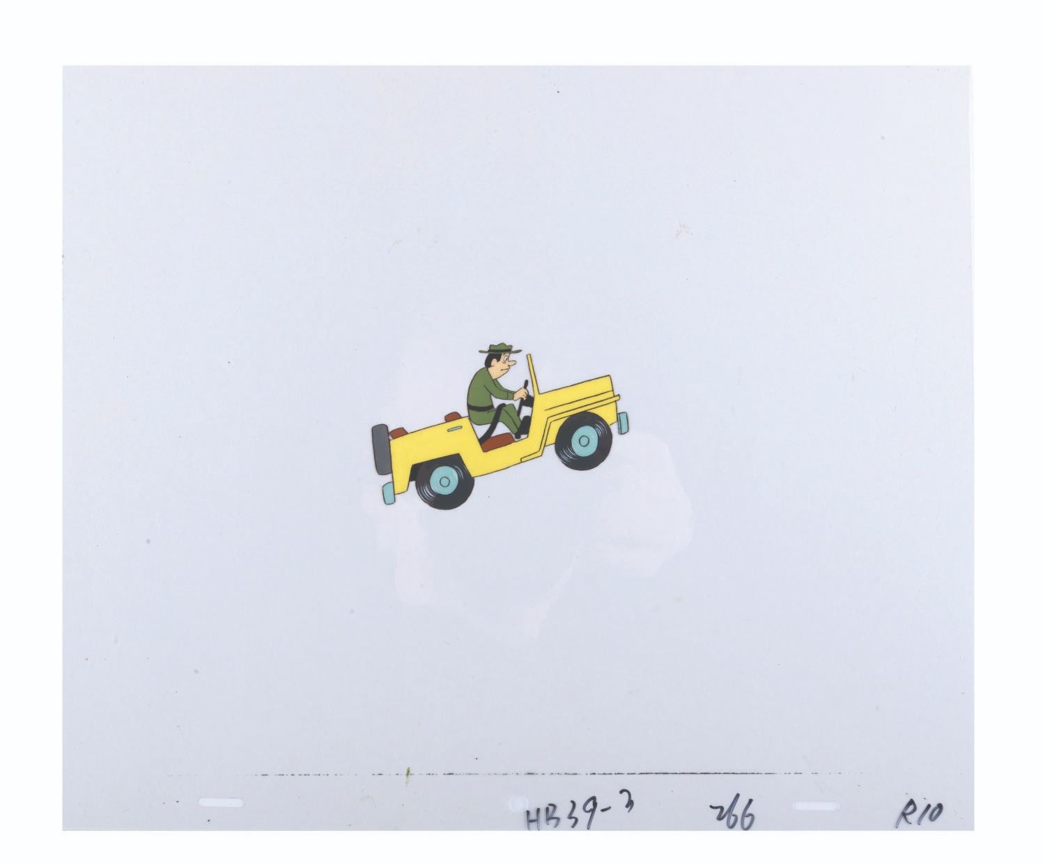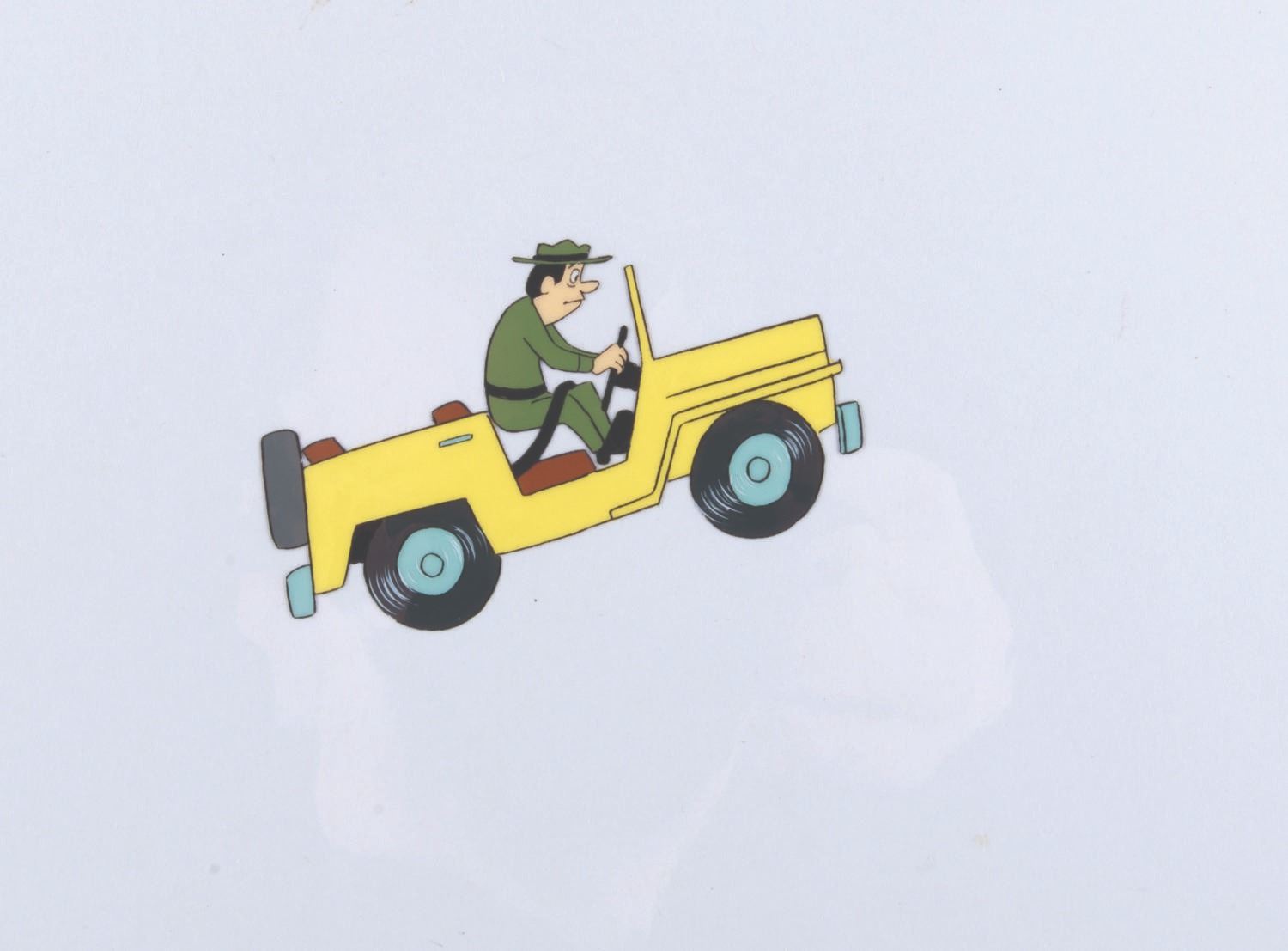 (Hanna-Barbera, 1980s) An original hand-painted production cel of Ranger Smith from a 1980s Yogi Bear production. With an image size of 2 " x 3.25 " on a 10.5 " x 12.5 " cel, the art is in very good condition with light scratches and wear from production use.