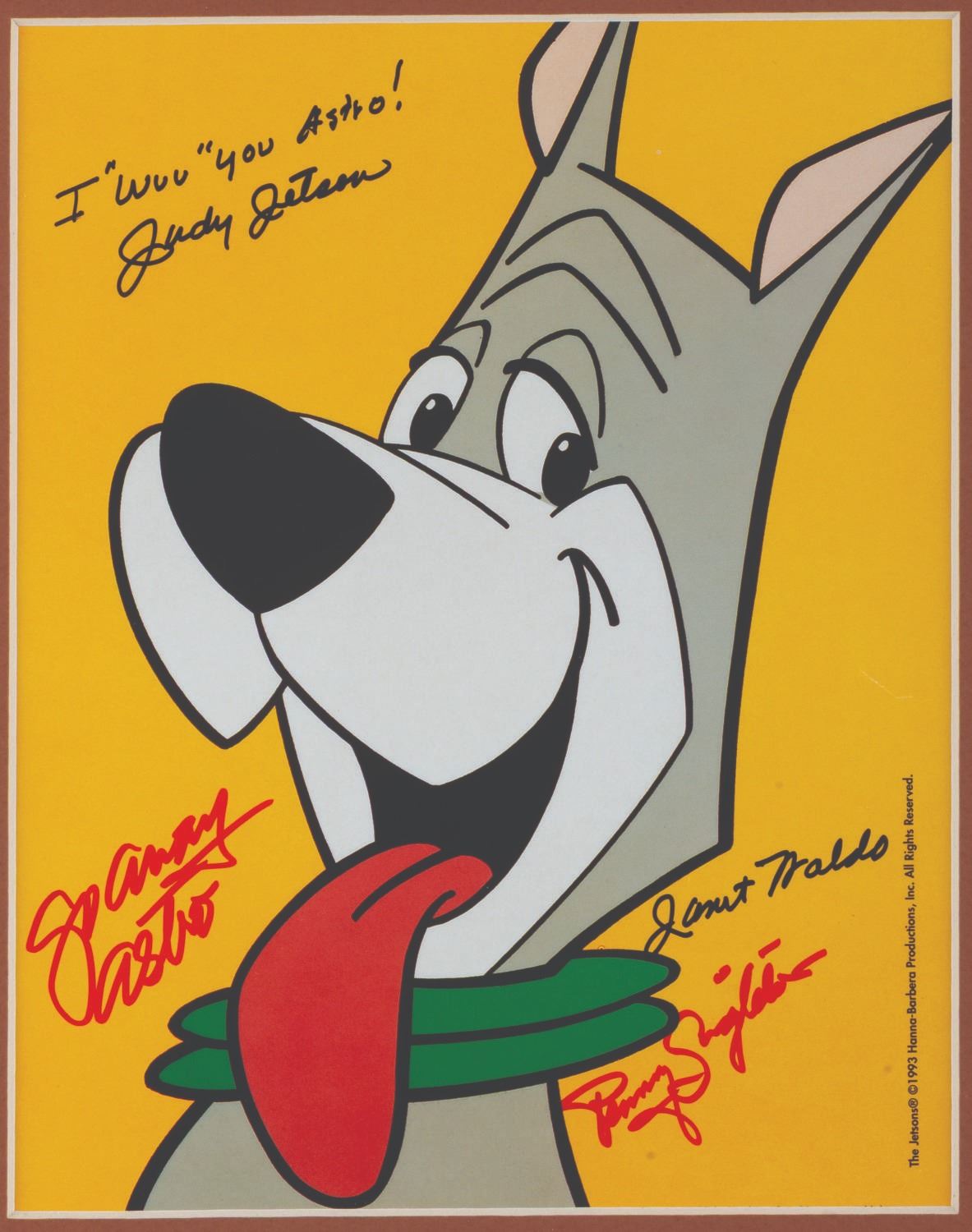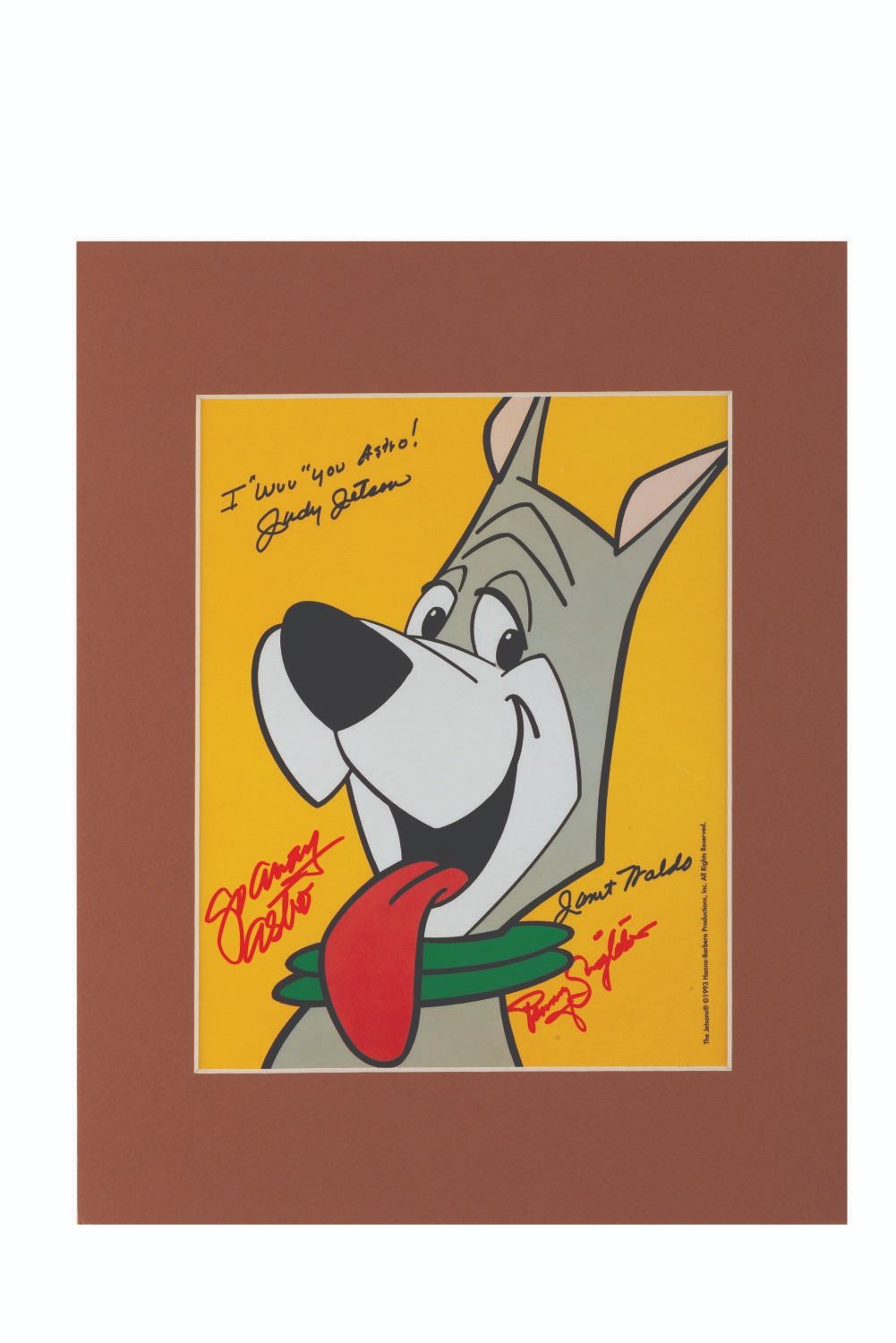 (Hanna-Barbera, 1990s) A print of Astro from "The Jetsons " signed by voice artists Janet Waldo (Judy Jetson) and Penny Singleton (Jane Jetson). With an image size of 7.5 " x 9.5 " in an 11 " x 14 " matte, the autographed piece is in fine condition.