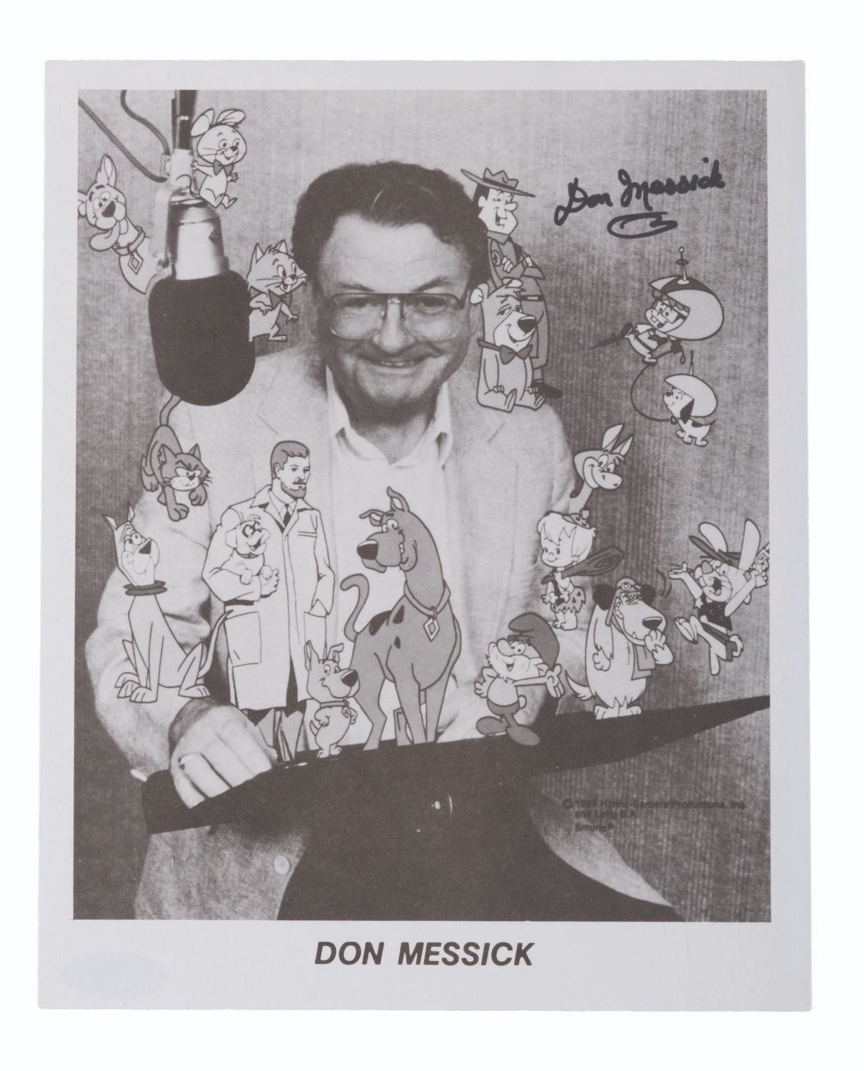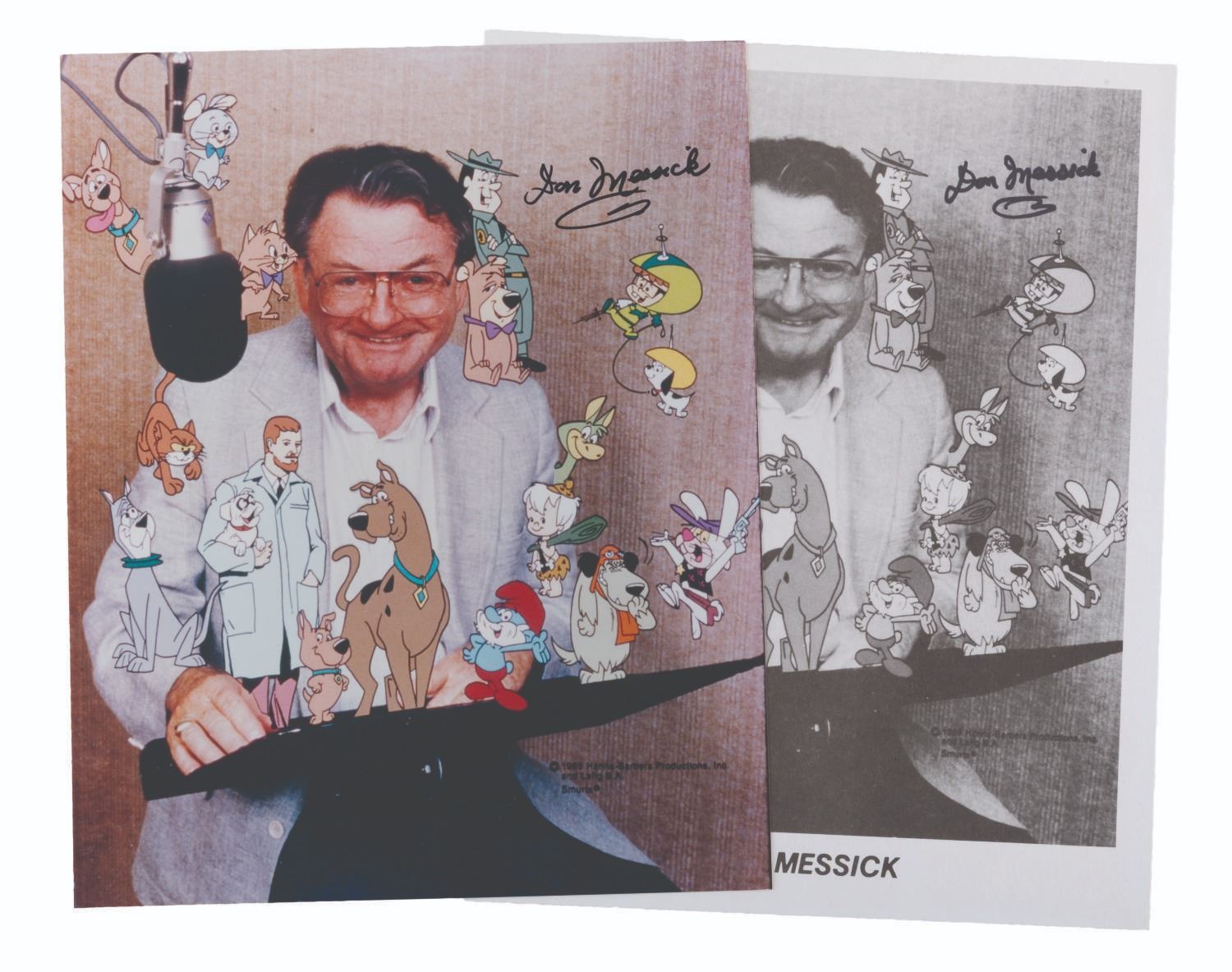 (Hanna-Barbera, 1990s) A pair of signed publicity photos of Don Messick, showing many of the characters he voiced from Scooby Doo to Papa Smurf, and more. Each measuring 8 " x 10 ", the color and black and white autographed prints are in fine condition.