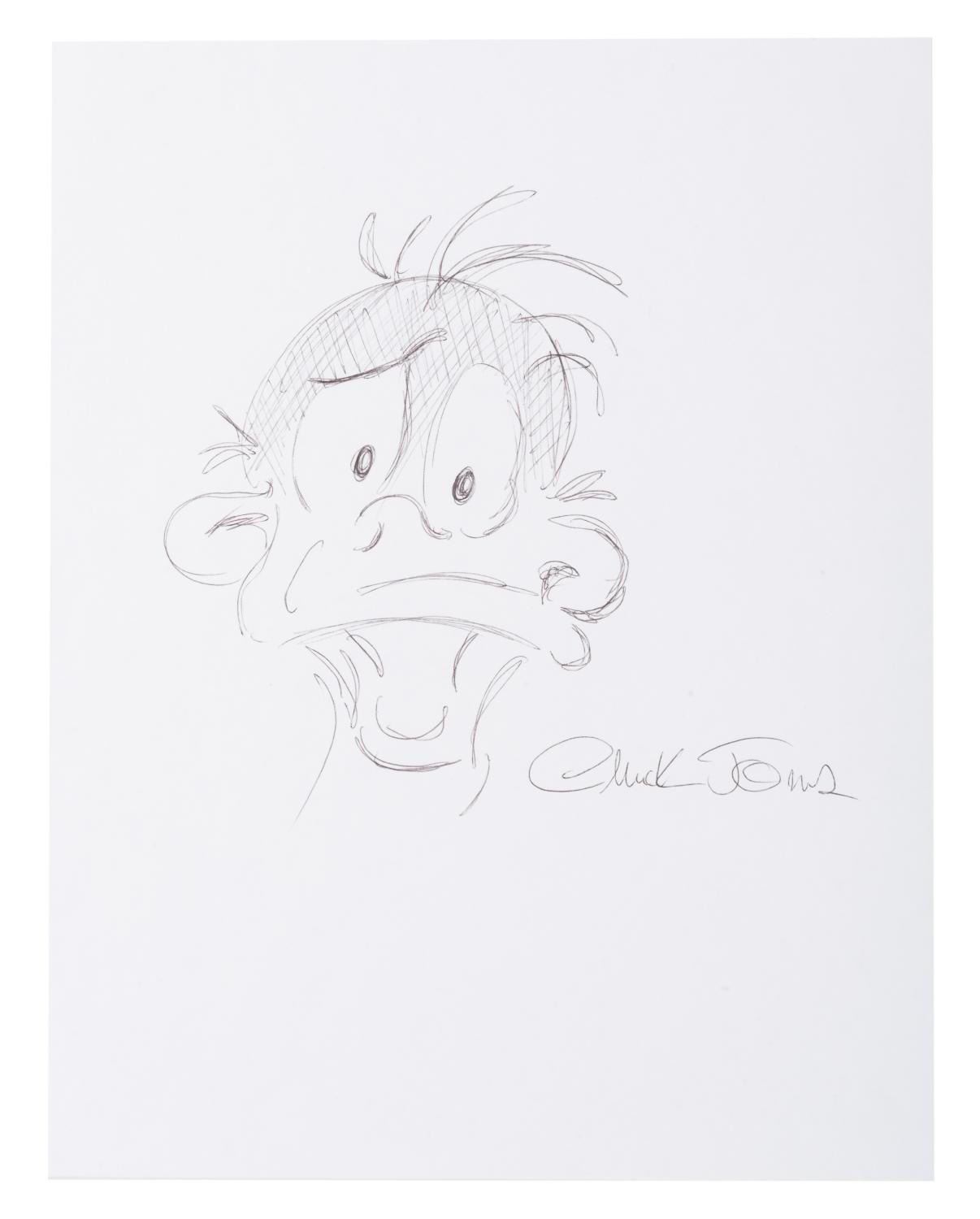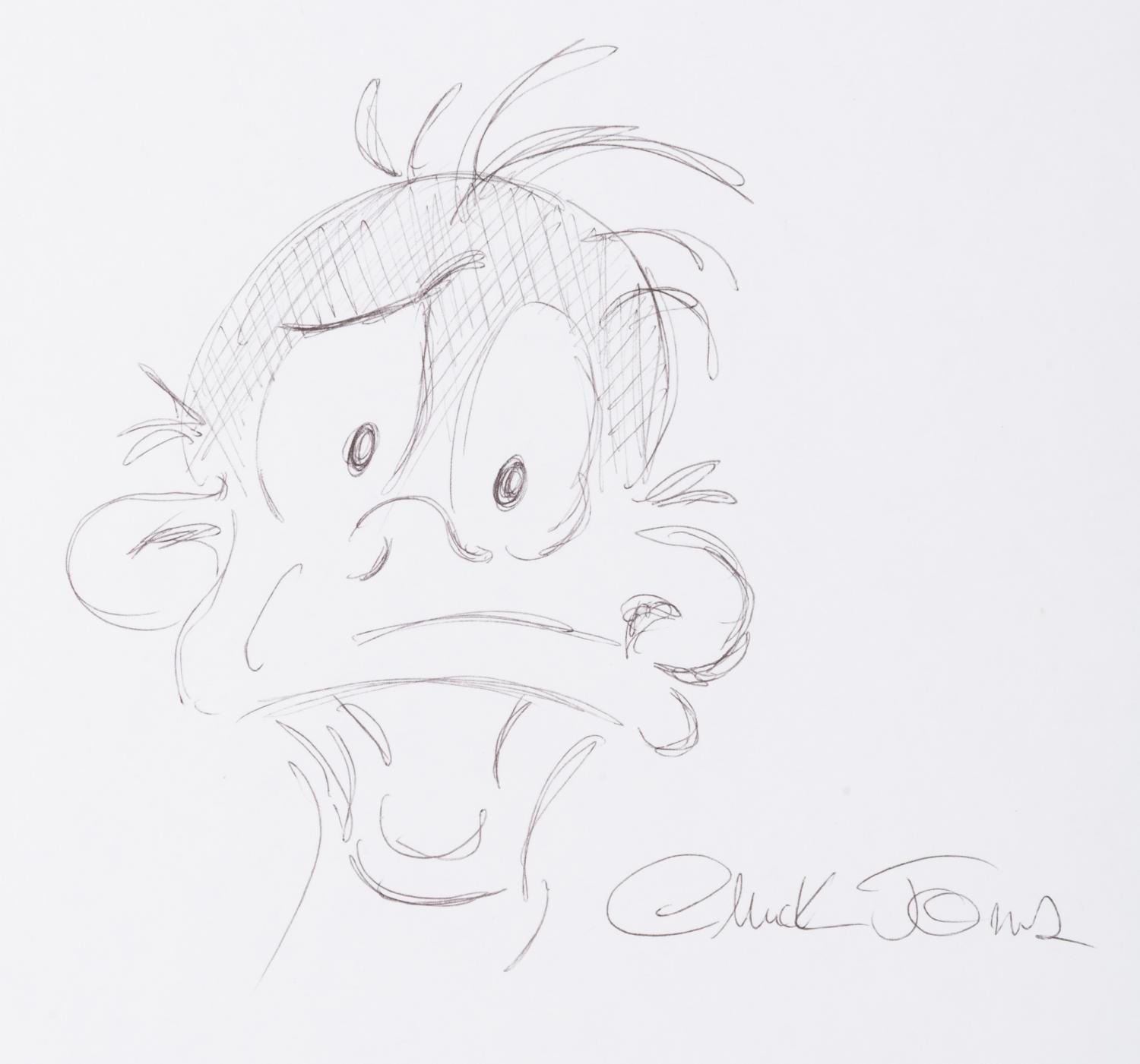 (Chuck Jones, 1970s-90s) A signed sketch of Daffy Duck by legendary animator Chuck Jones. The sketch has been executed in black ink on copy paper. With a character image size of 4.5 " x 6.5 " on 8.5 " x 11 " copy paper, the drawing is in fine condition.